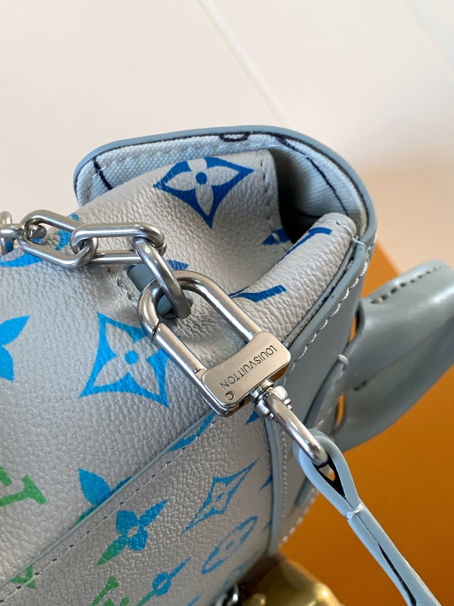 LV M13905 Nano Steamer Bag 15cm Solf Blue White Monogram Silver HW
