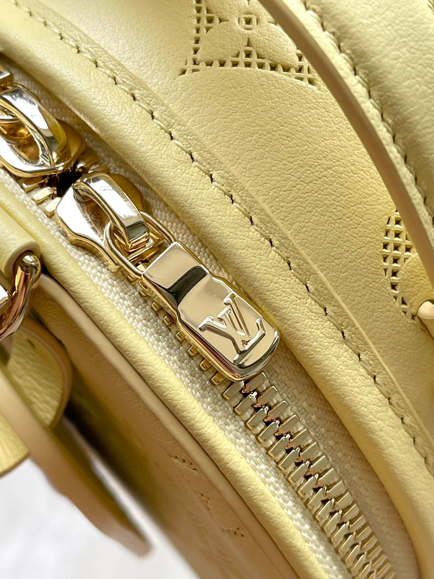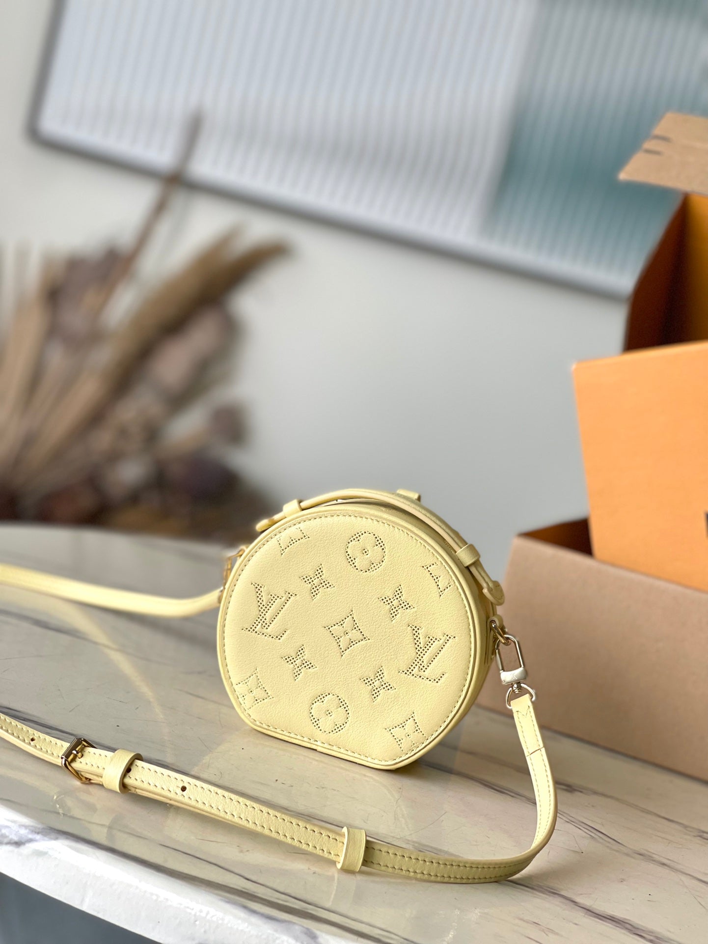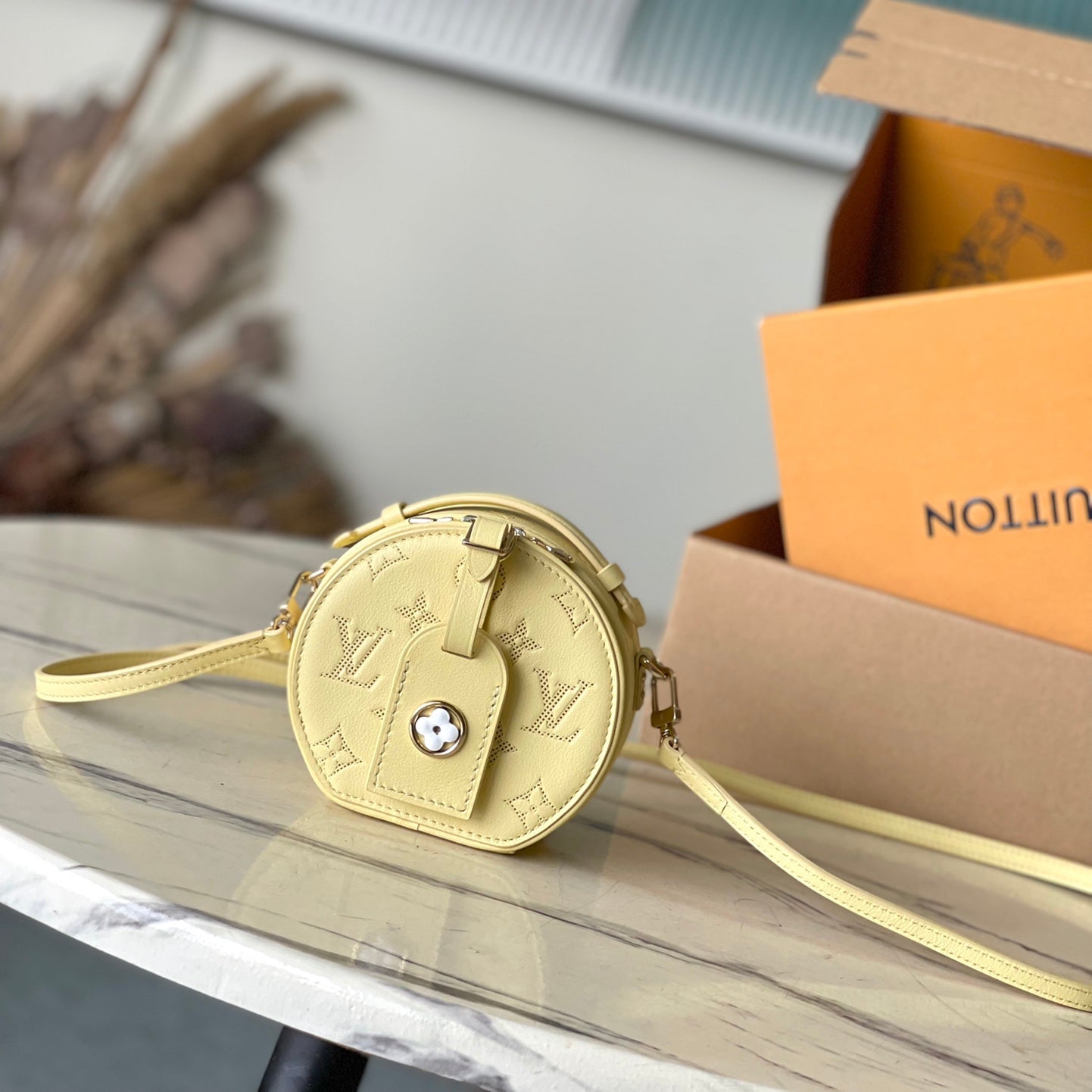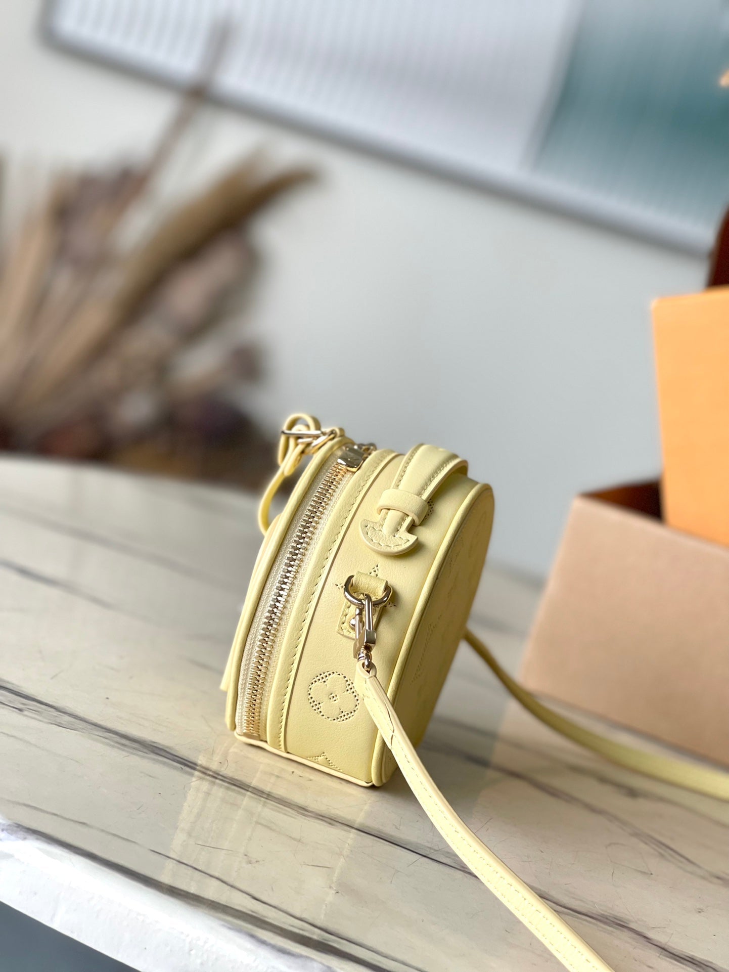 MINI CAPPELLIERA SCATOLA 13 IN PELLE DI VITELLO TRAFORATA CON MONOGRAMMA GIALLO BANANA