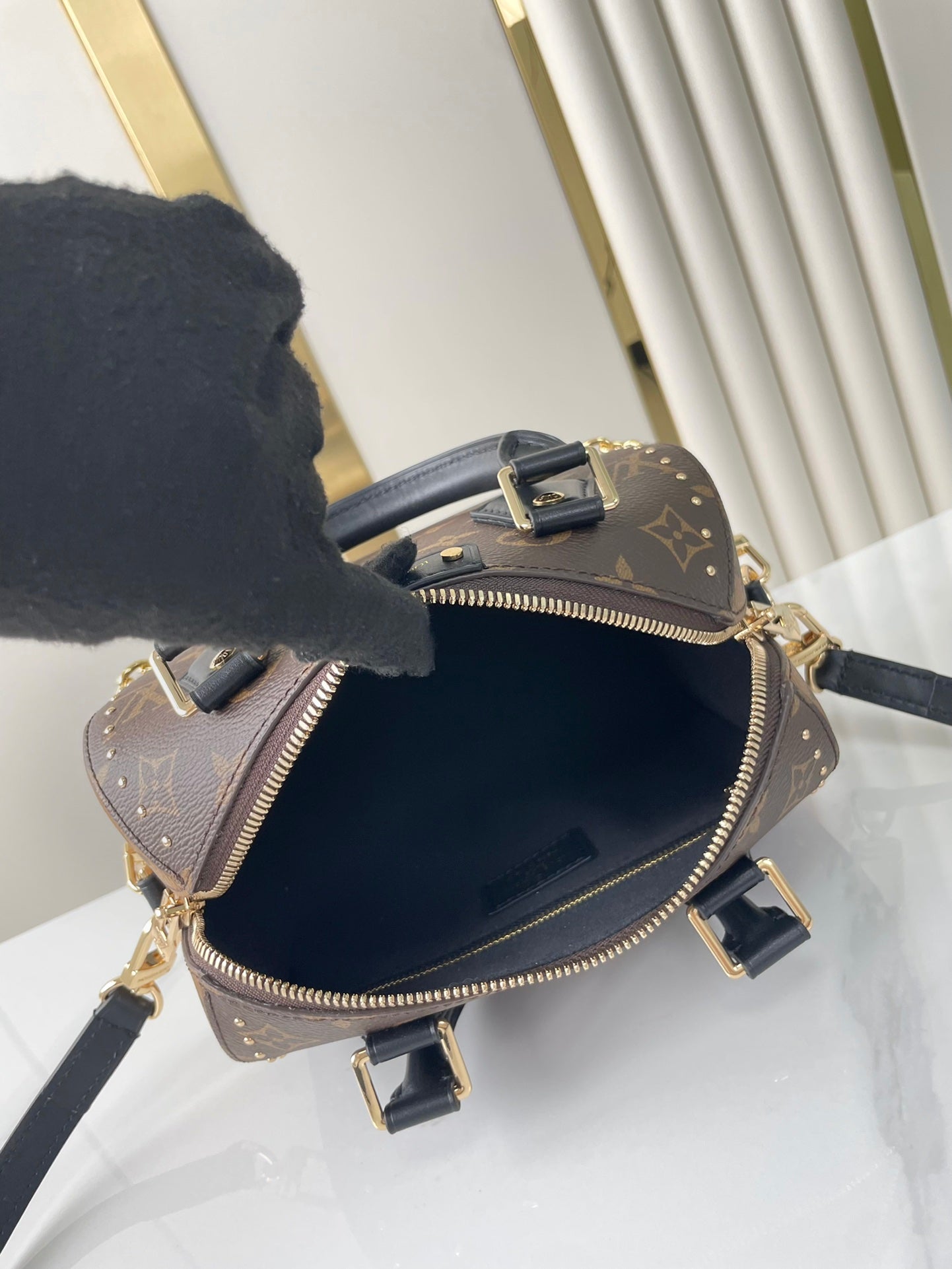 SPEEDY TRUNK 20 IN TELA MONOGRAM MARRONE E RIFINITURE IN PELLE DI VITELLO NERA, FIBBIA ORO