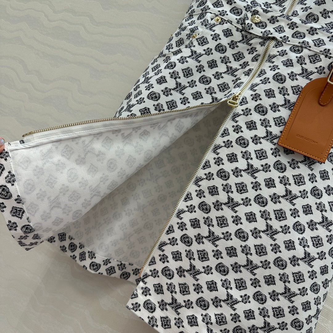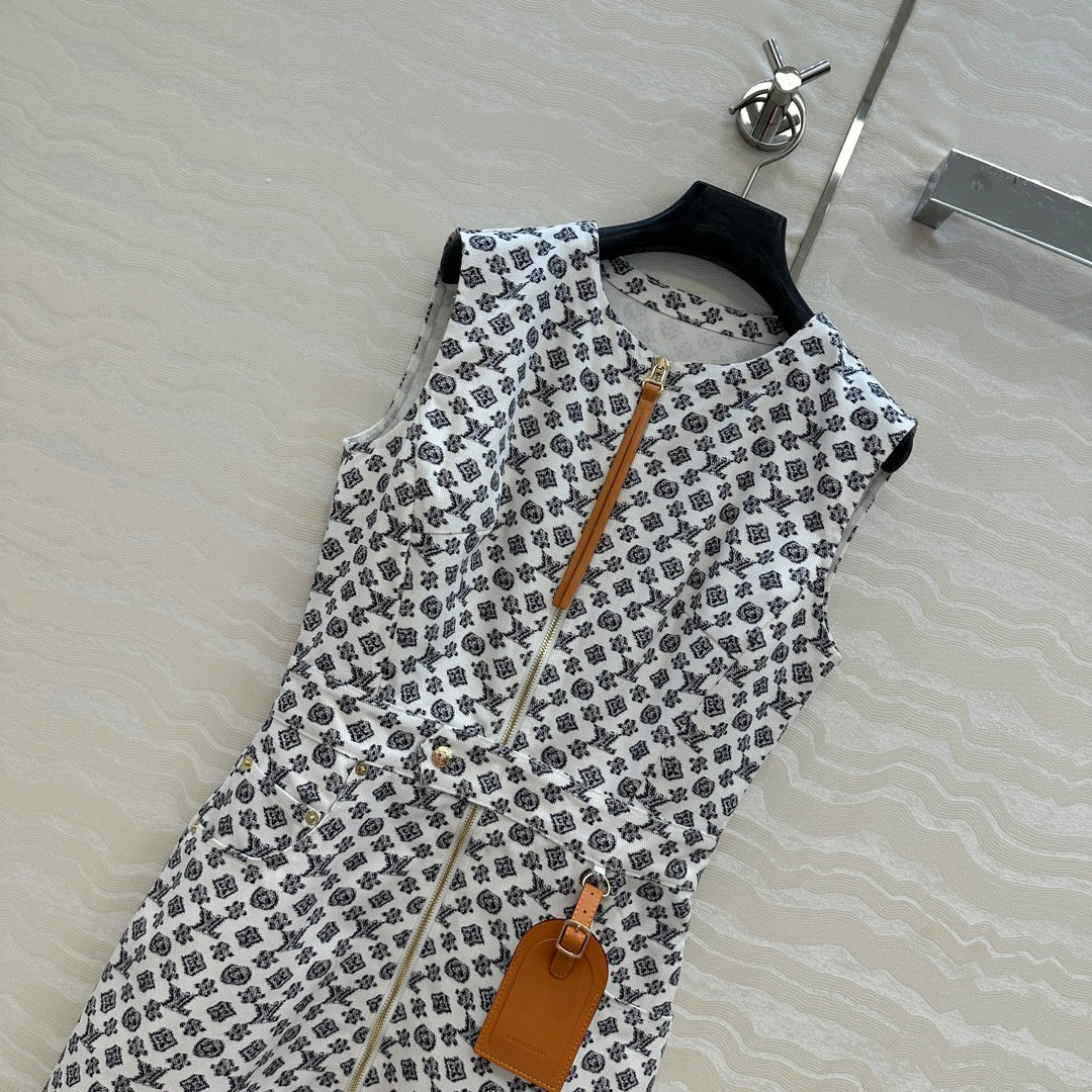 LV 25 Modern Logo Denim Long Vest Dress Nero Bianco Poliestere