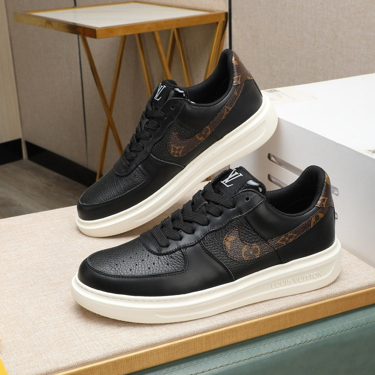 LV AIR FORCE 1 IN PELLE DI VITELLO NERA LUCIDA CON LOGO MONOGRAMMA MARRONE