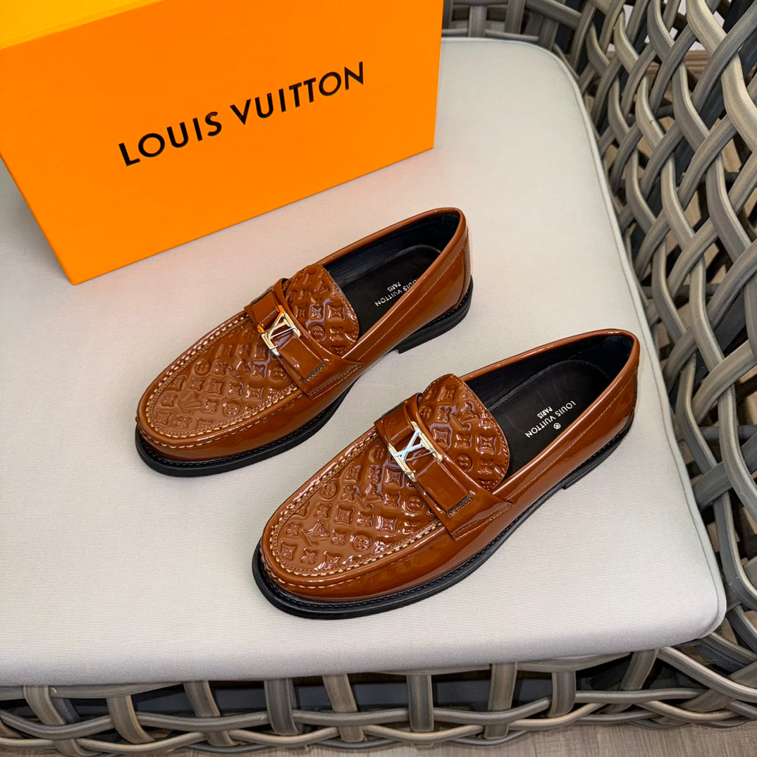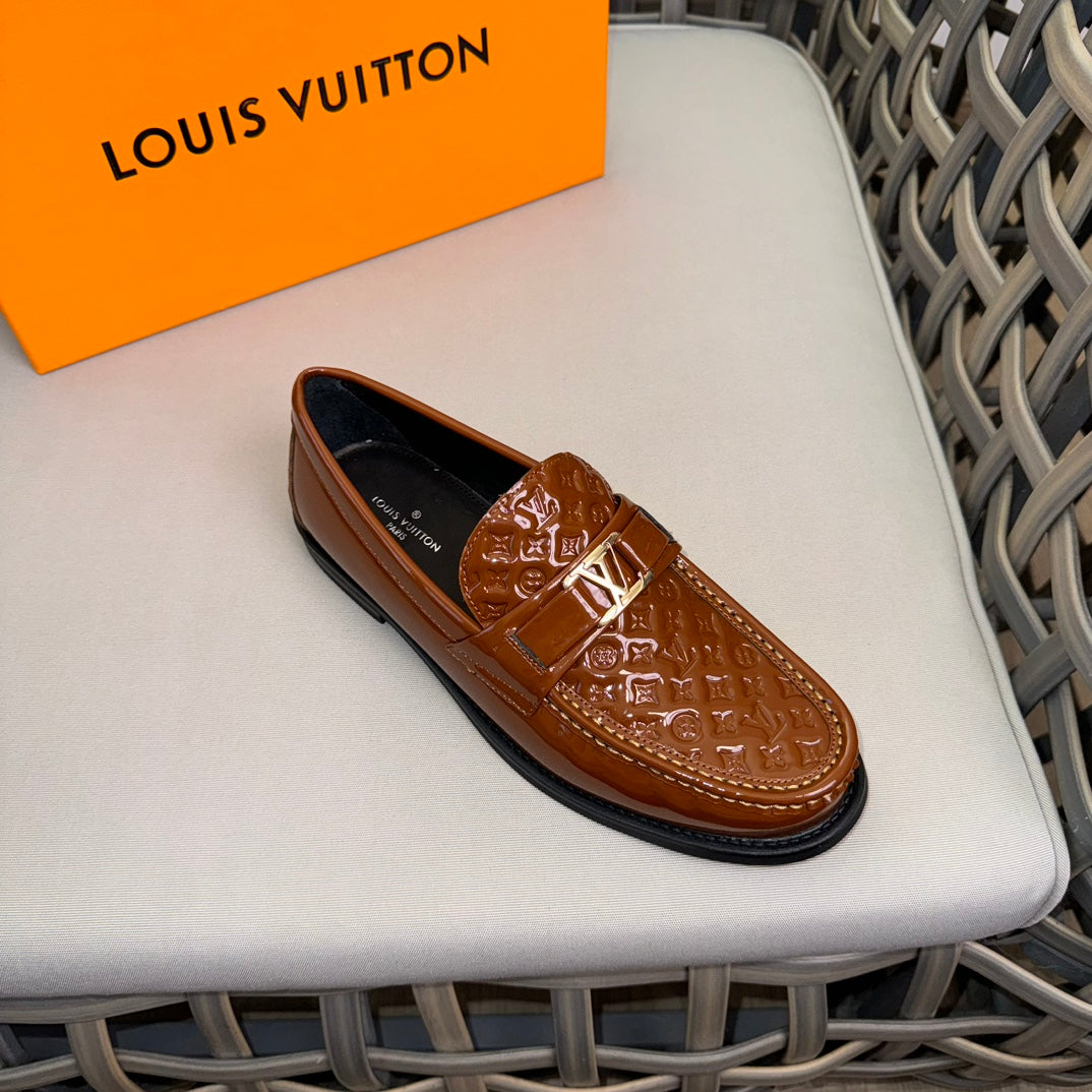 MOCASSINI LV MAJOR IN PELLE DI VITELLO GOFFRATA MARRONE CIOCCOLATO