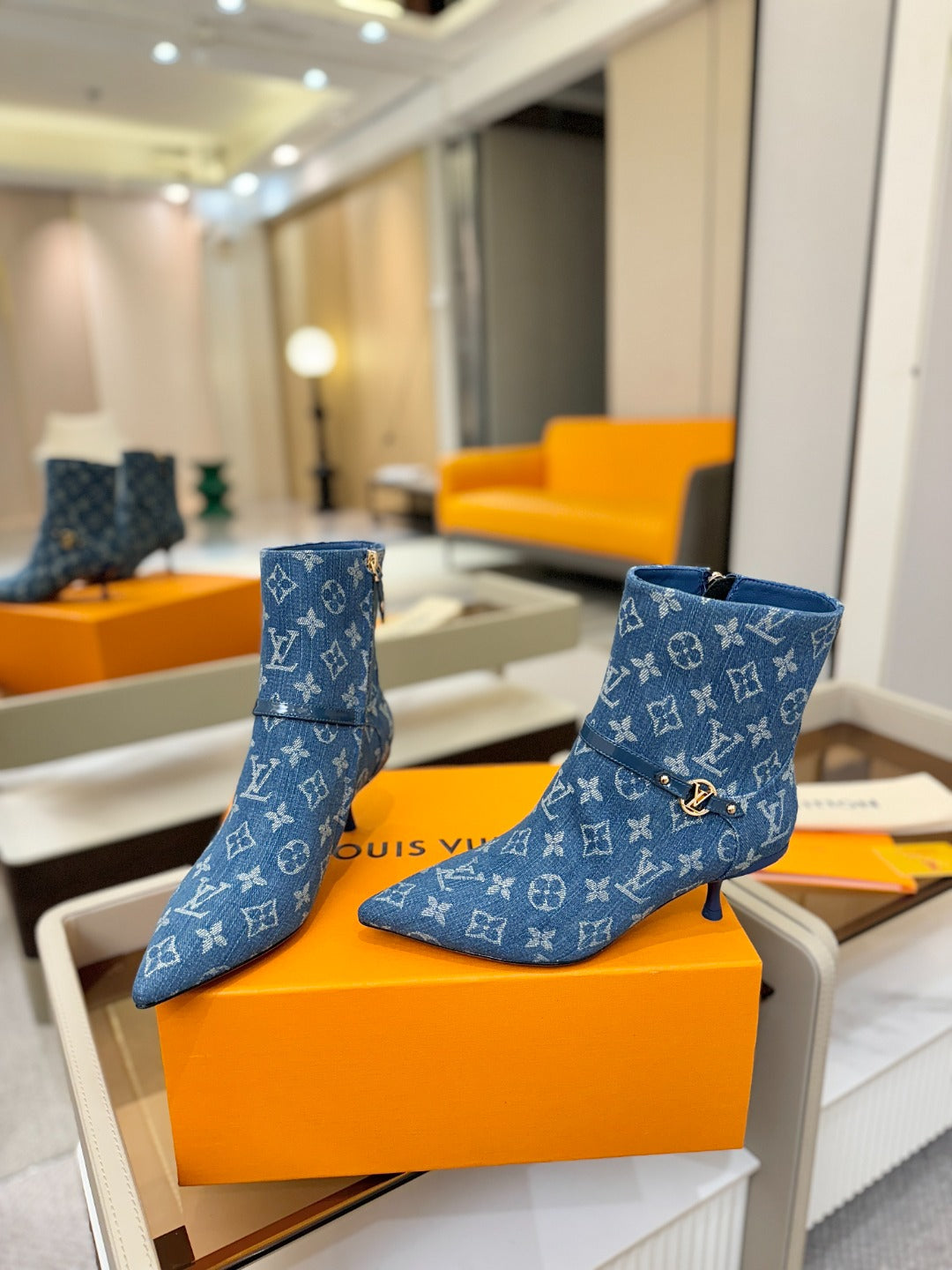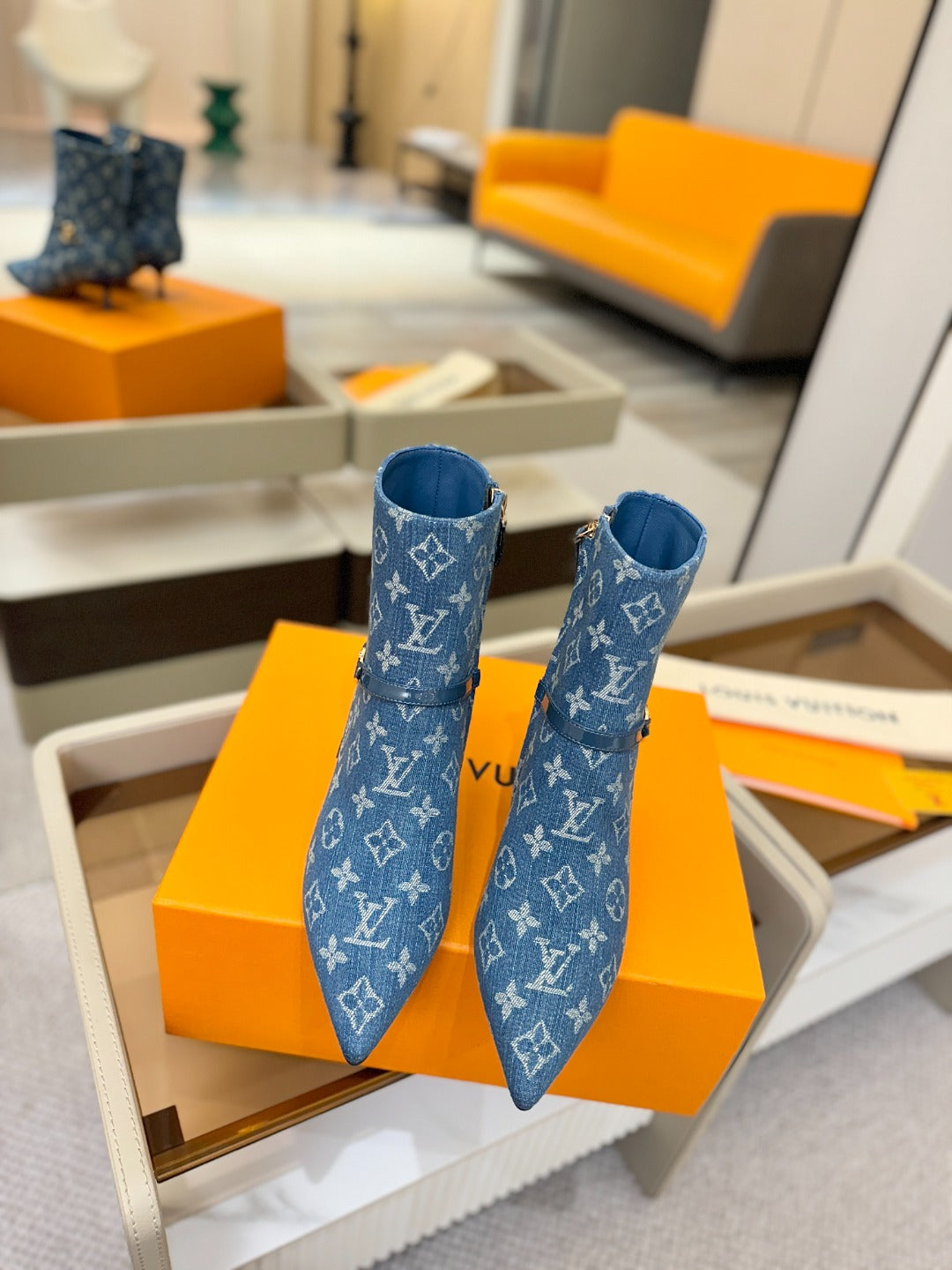 LV 6AM Ankle Boots 55mm Heel Blue Denim 504811