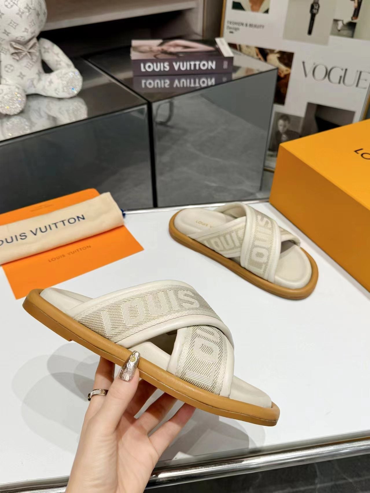 sandalo mulo lv bliss corss crema tessuto pelle di vitello