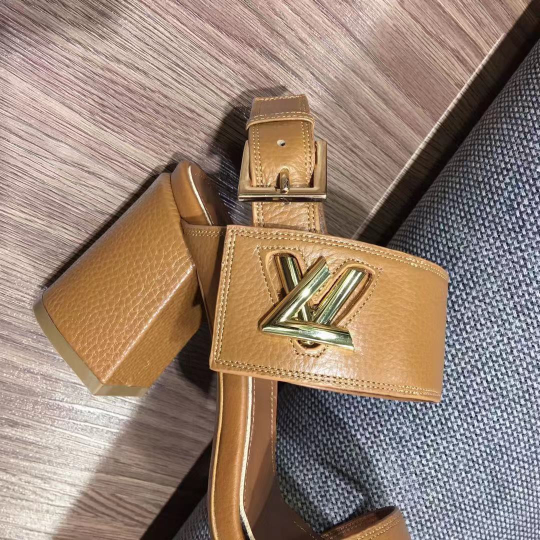 Sandali con cinturino alla caviglia LV Horizon 75mm in pelle di vitello marrone giallo