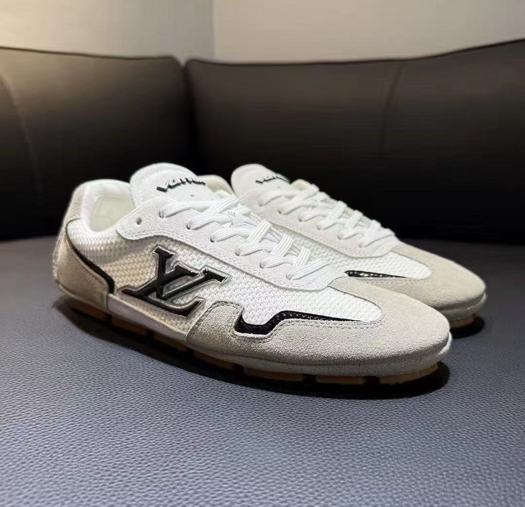 Sneaker LV Rally in pelle scamosciata di vitello grigia e tessuto a rete
