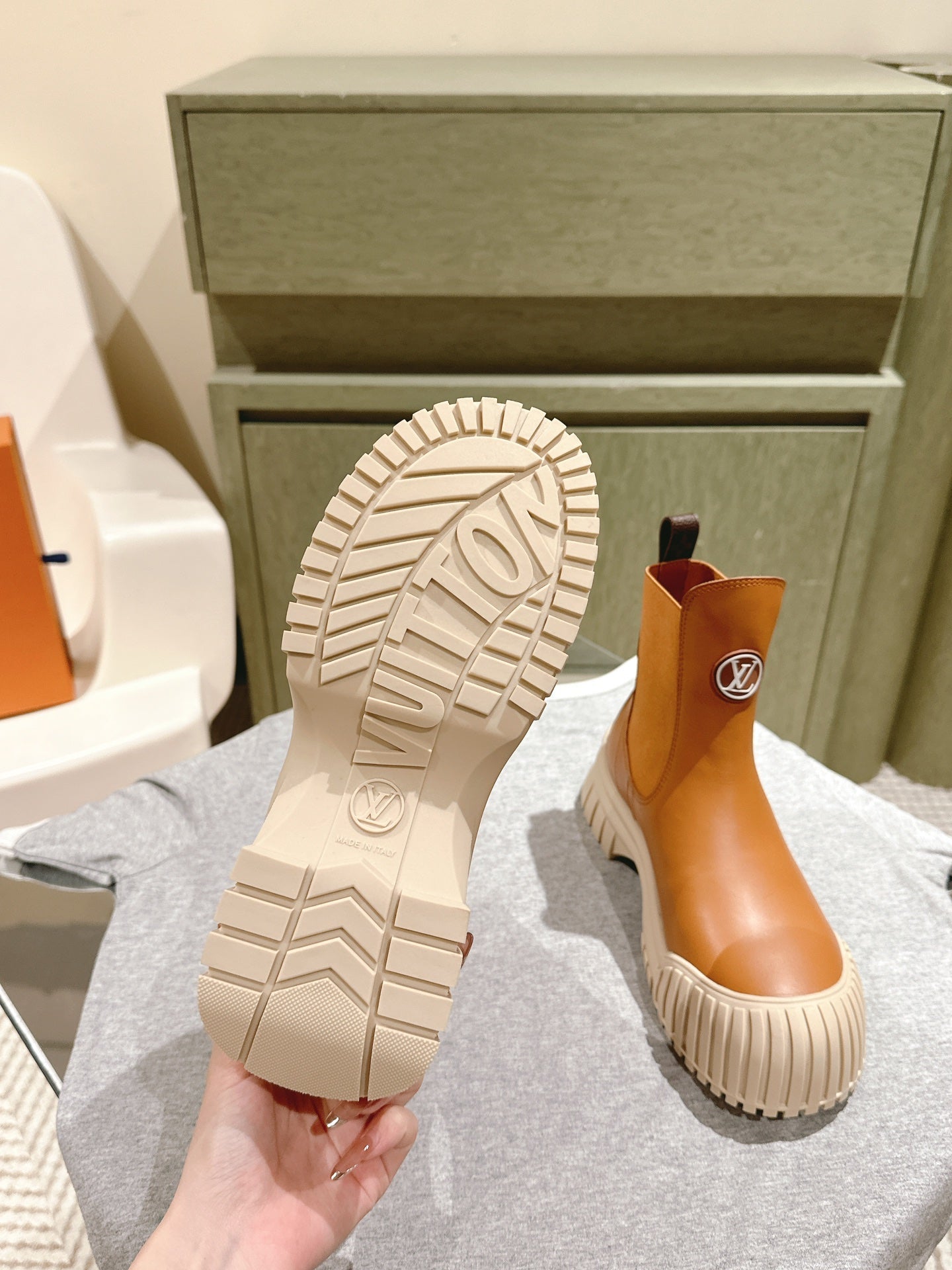 Stivaletto alla caviglia LV Ruby Flat 50mm in pelle di vacchetta marrone chiaro 450432