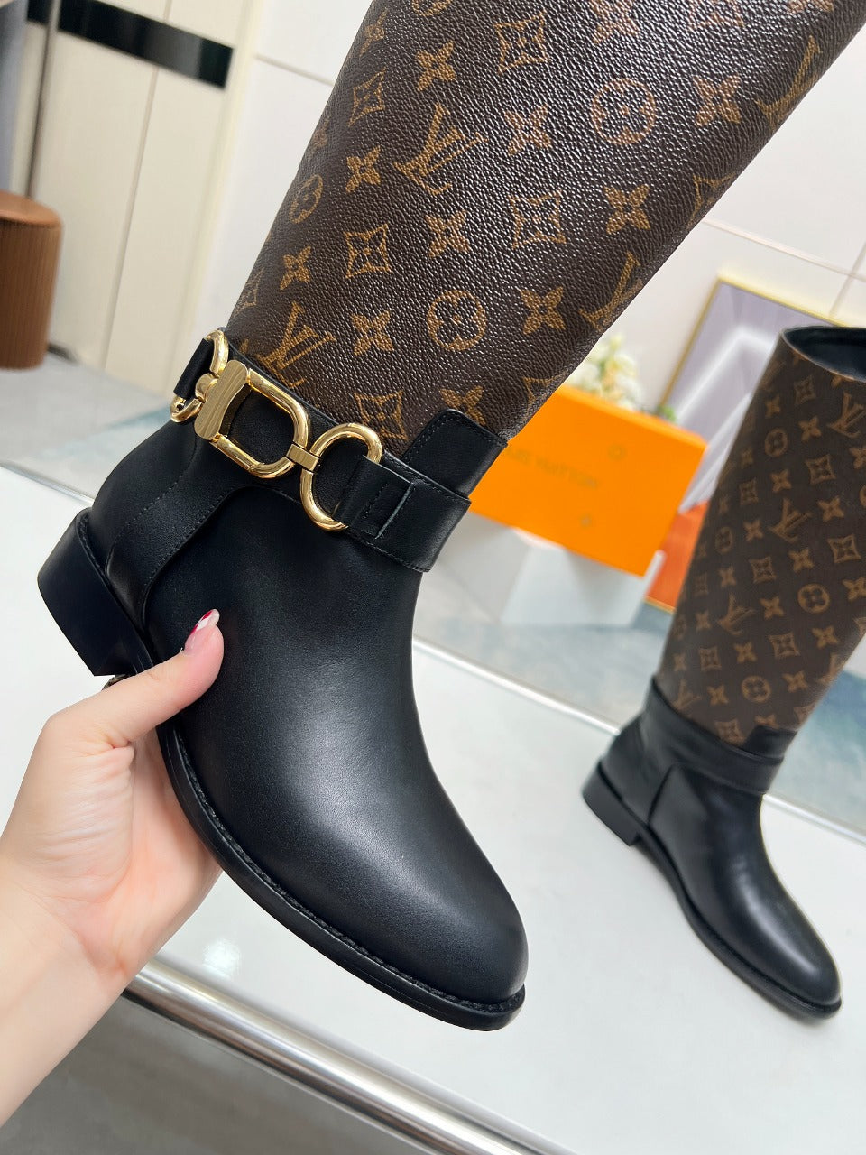 Stivale alto piatto LV Westside 40mm in pelle di agnello monogramma marrone scuro