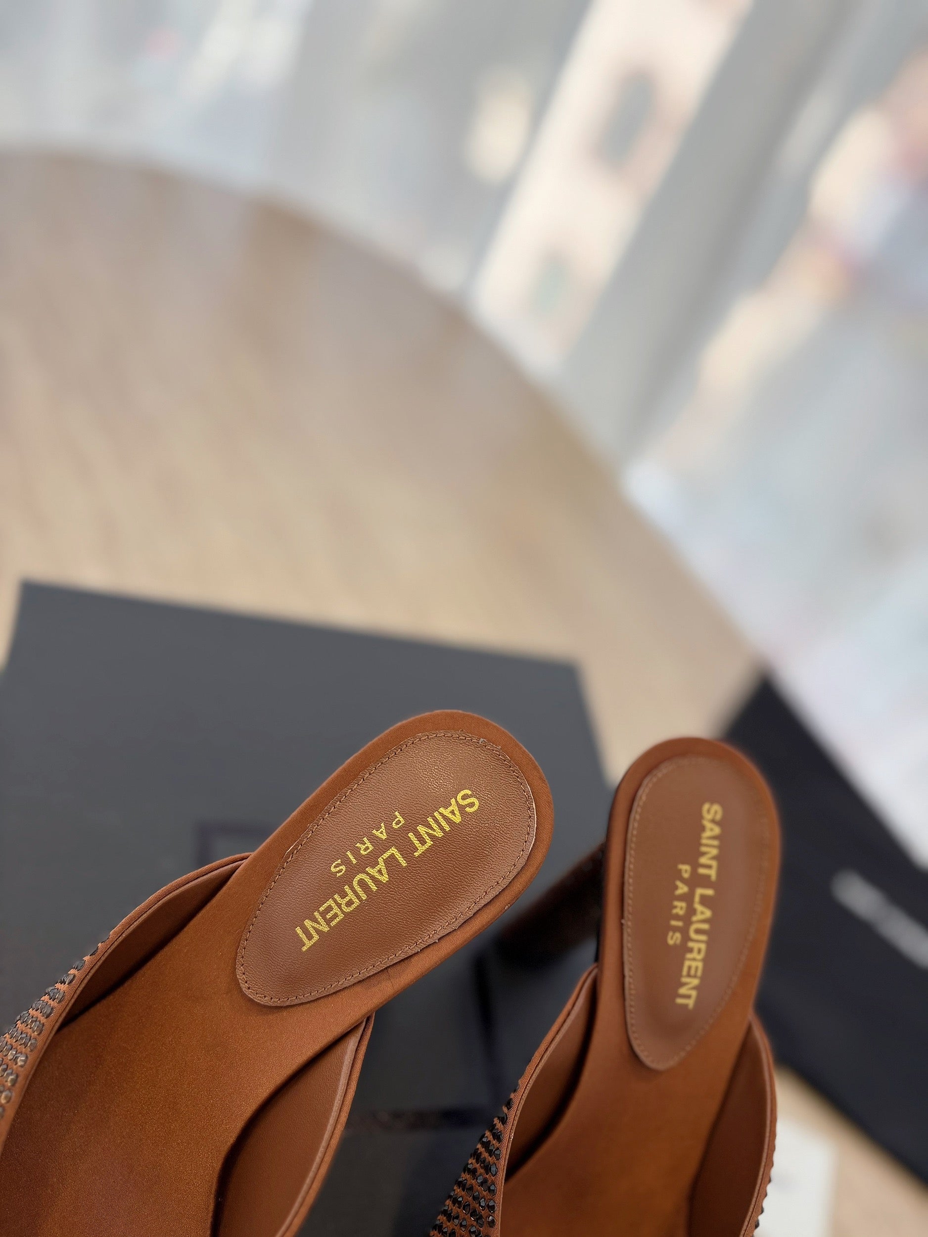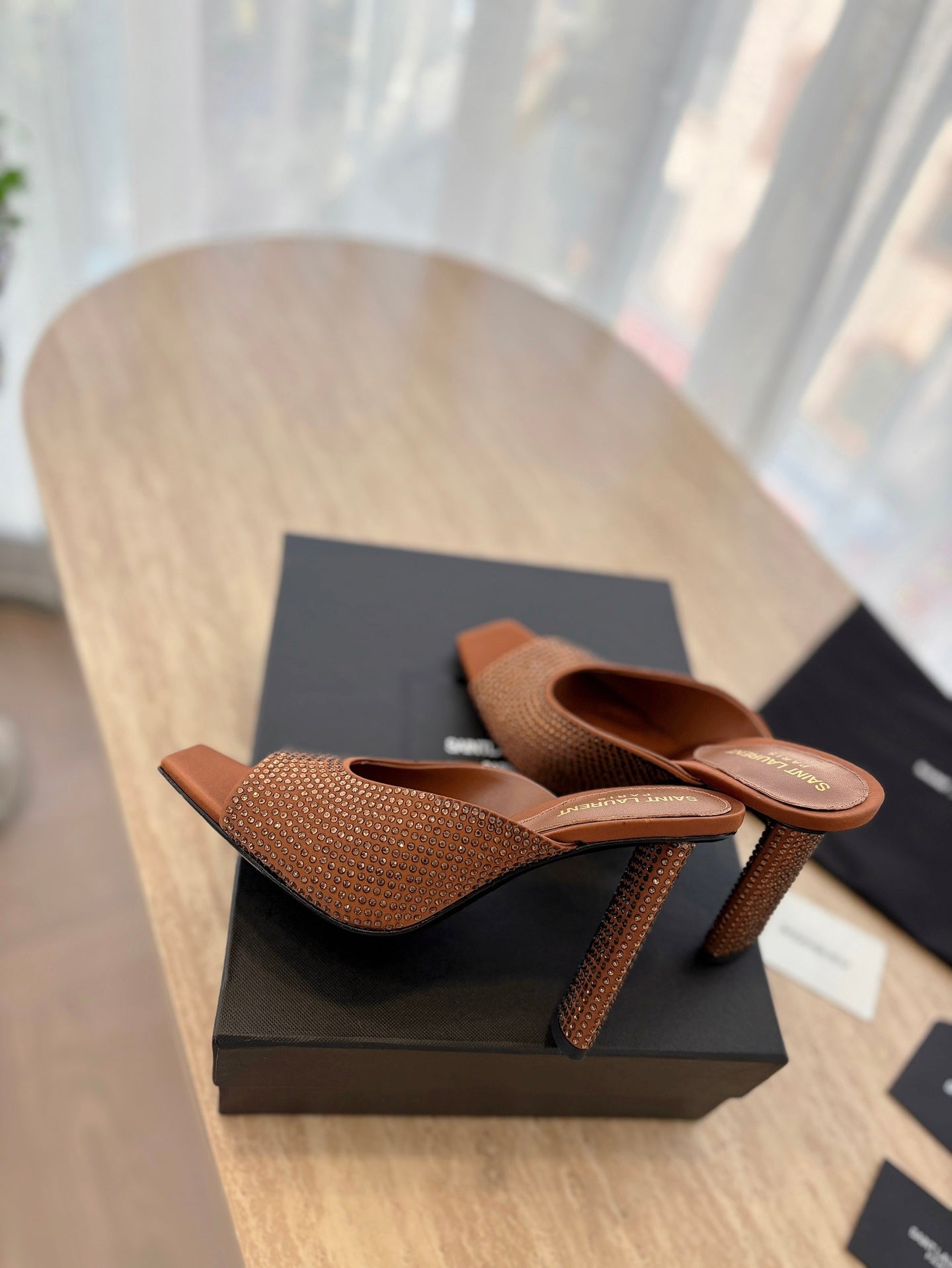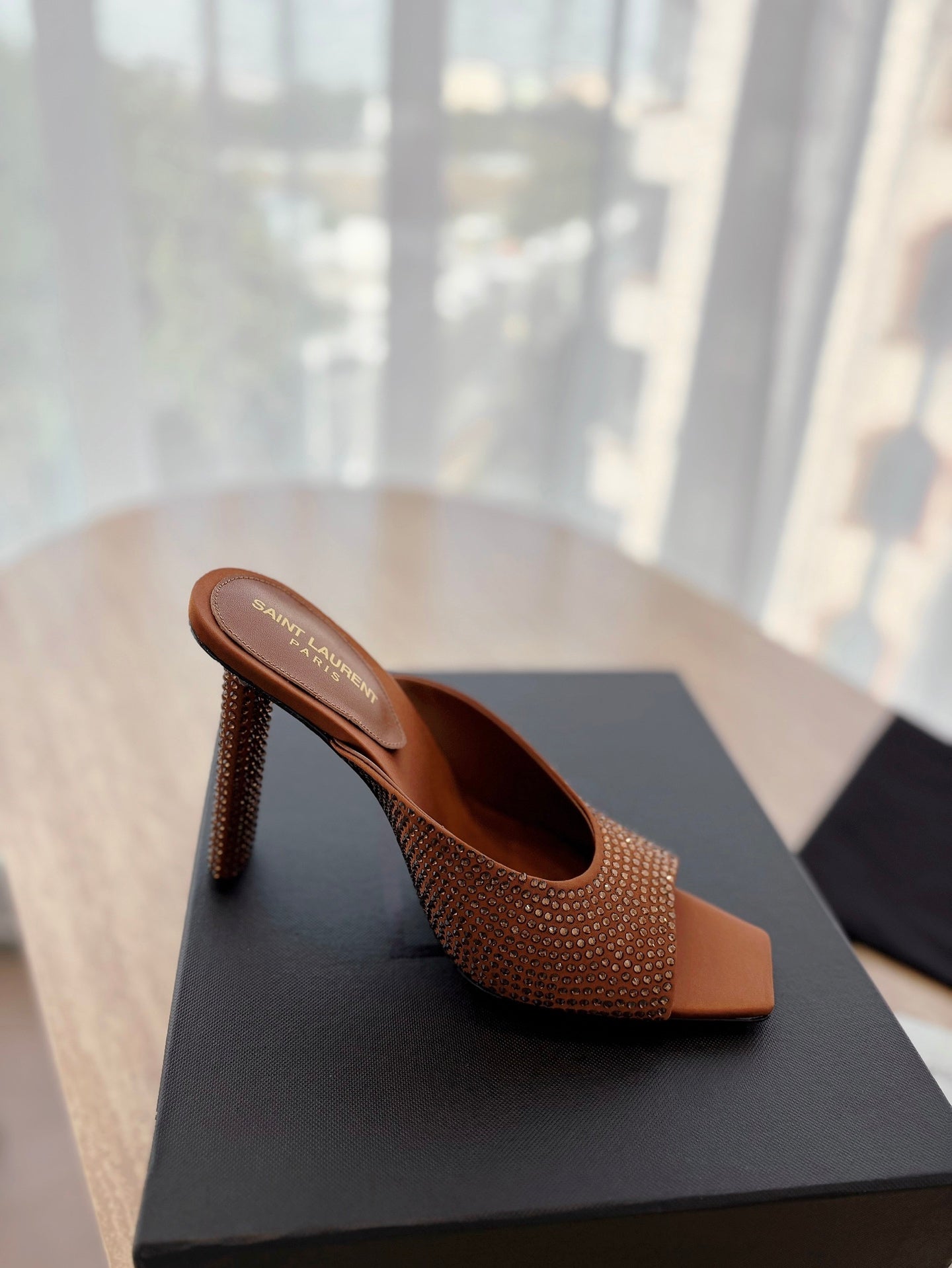 MULE BIONDA TACCO ALTO 10 CM IN RASO MARRONE BRONZO CON STRASS