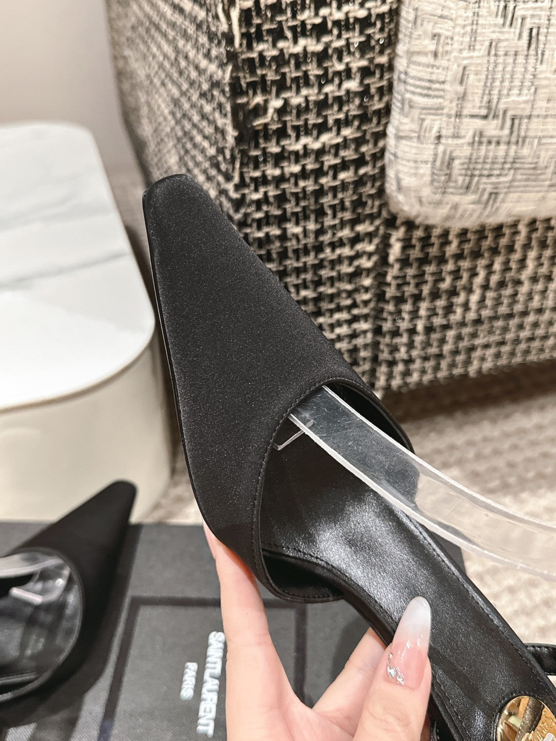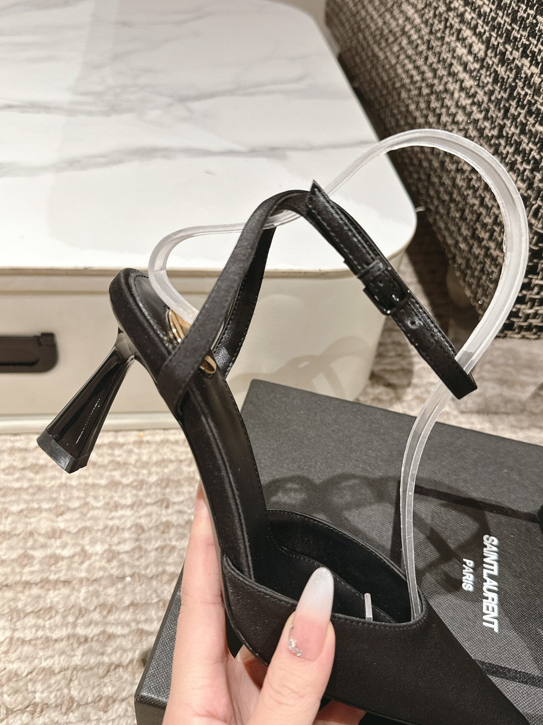 SANDALO SLINGBACK CON TACCO ALTO 7 CM IN SETA NERA