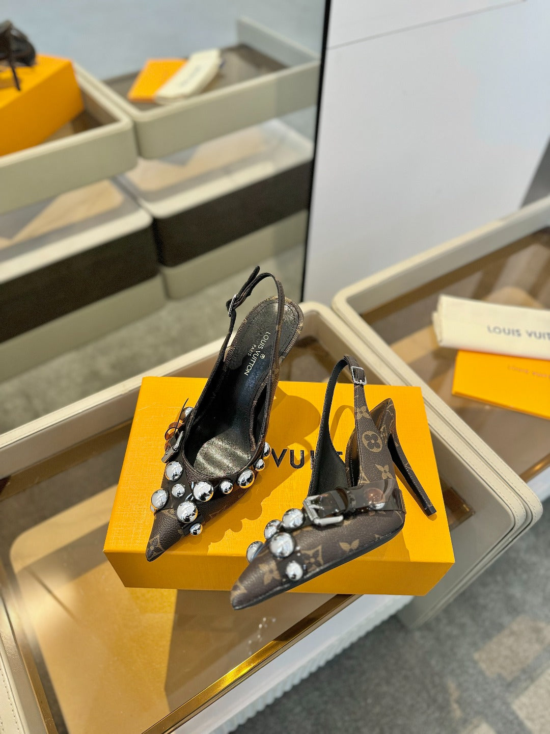 TACCO ALTO 95 MM IN VITELLO MONOGRAM MARRONE CIOCCOLATO CON CRISTALLI