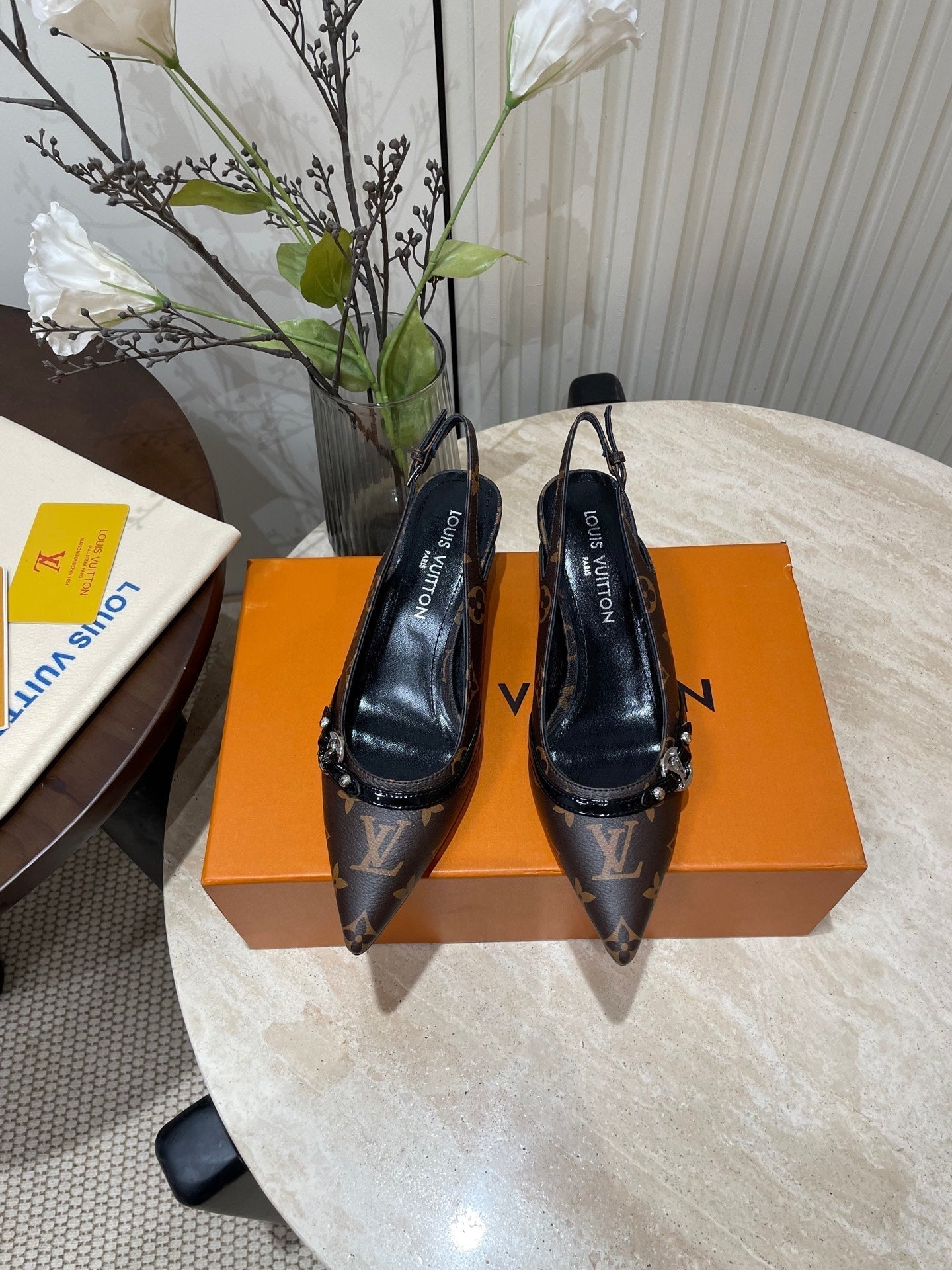 SLINGBACKS ALTI 5 CM IN PELLE DI VITELLO MONOGRAM MARRONE CIOCCOLATO