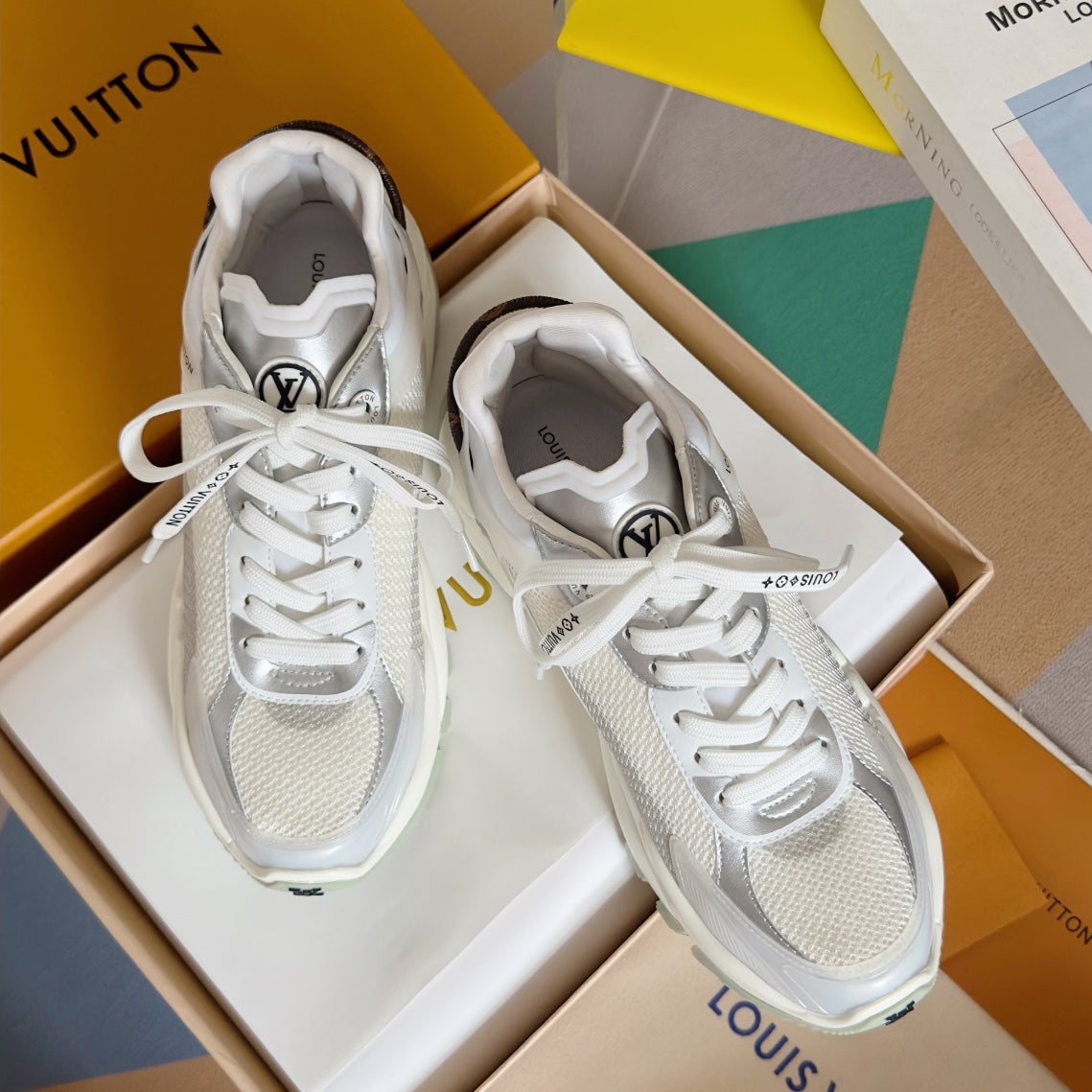 Sneaker LV Run 55 da 55 mm in tessuto jacquard grigio misto bianco