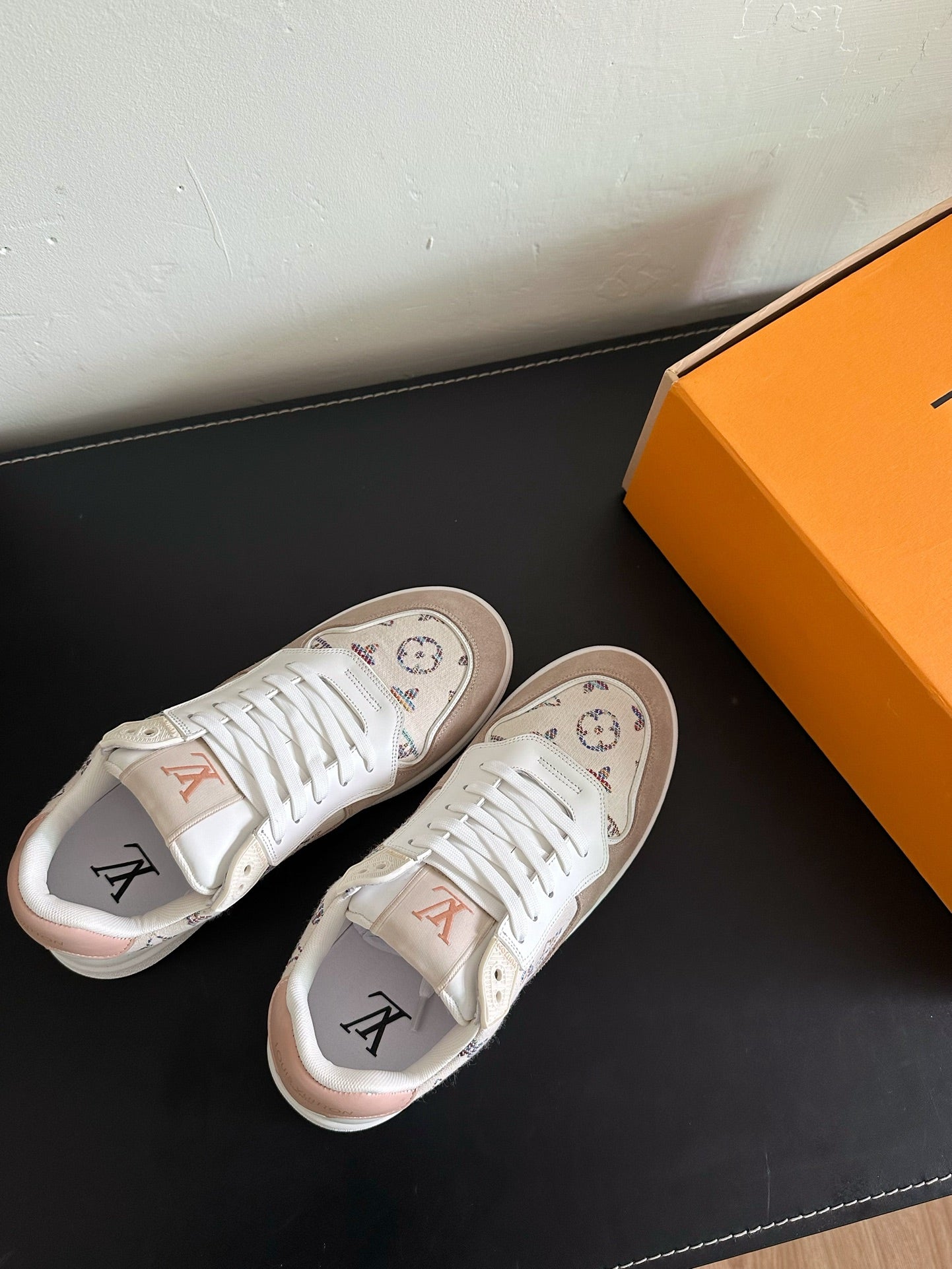 Sneaker LV Stadium in pelle scamosciata monogrammata bianca e marrone