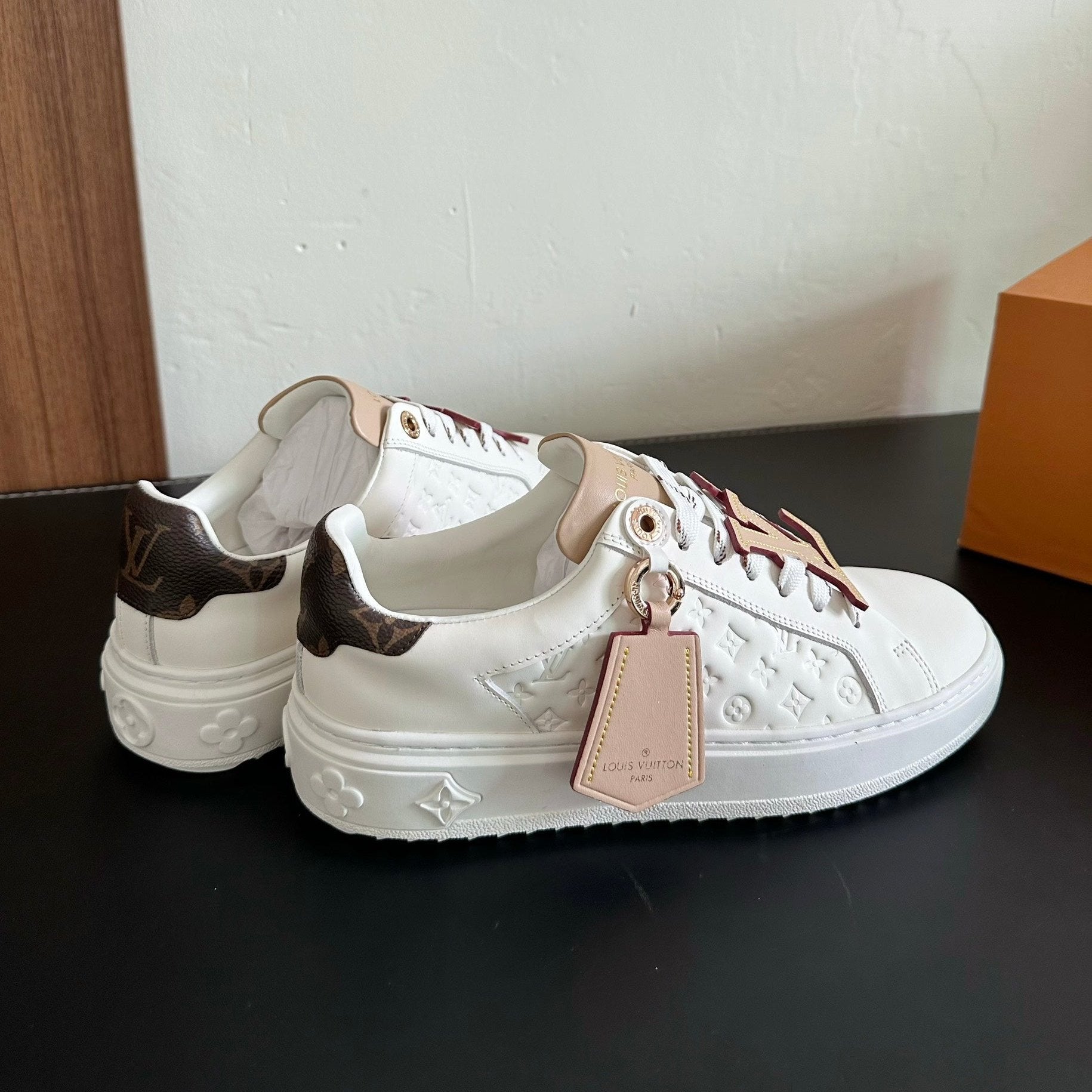 Sneakers LV Time Out in pelle di vitello monogrammata beige mix bianco