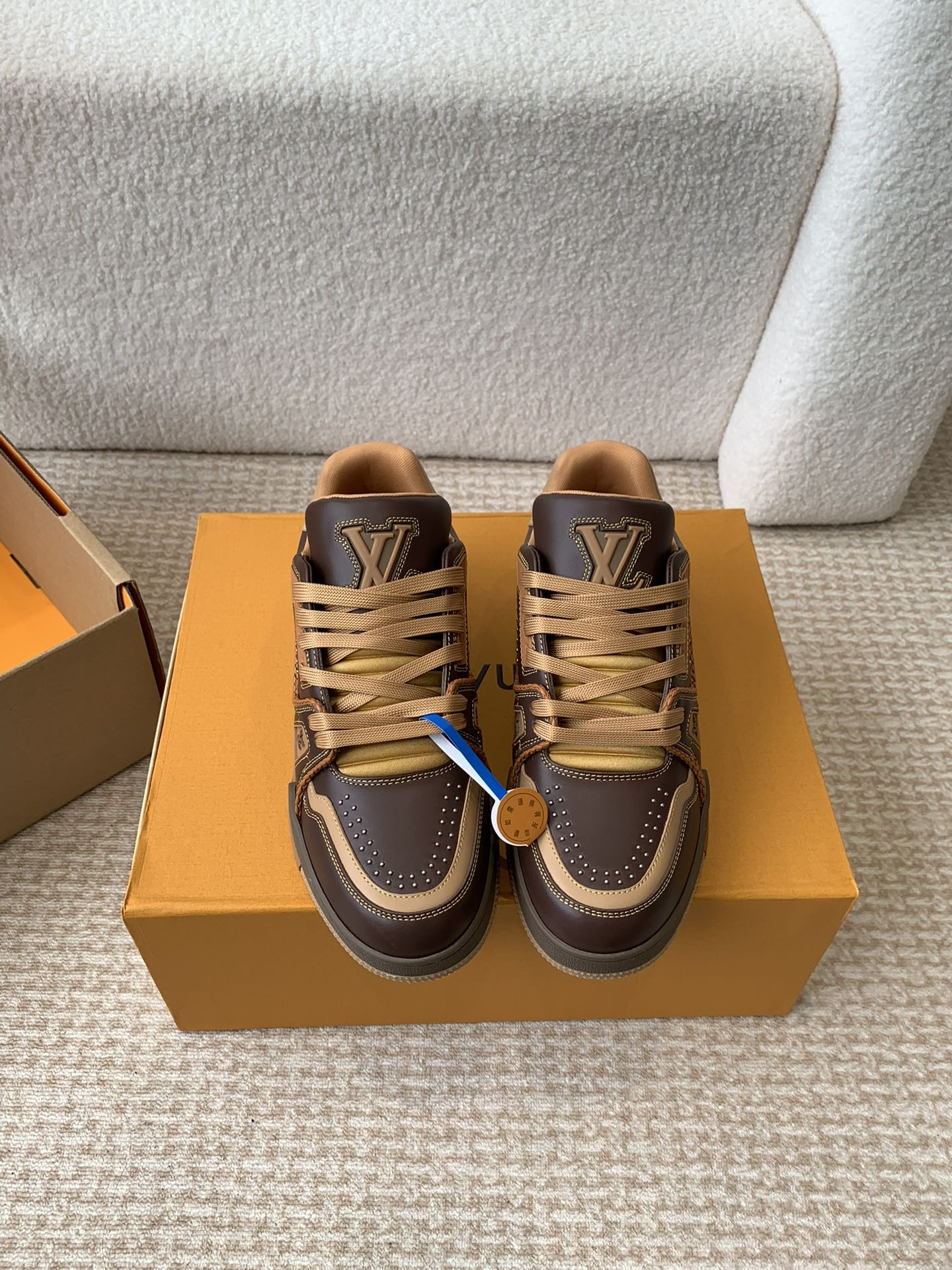 Sneaker LV Trainer in pelle di vacchetta marrone scuro