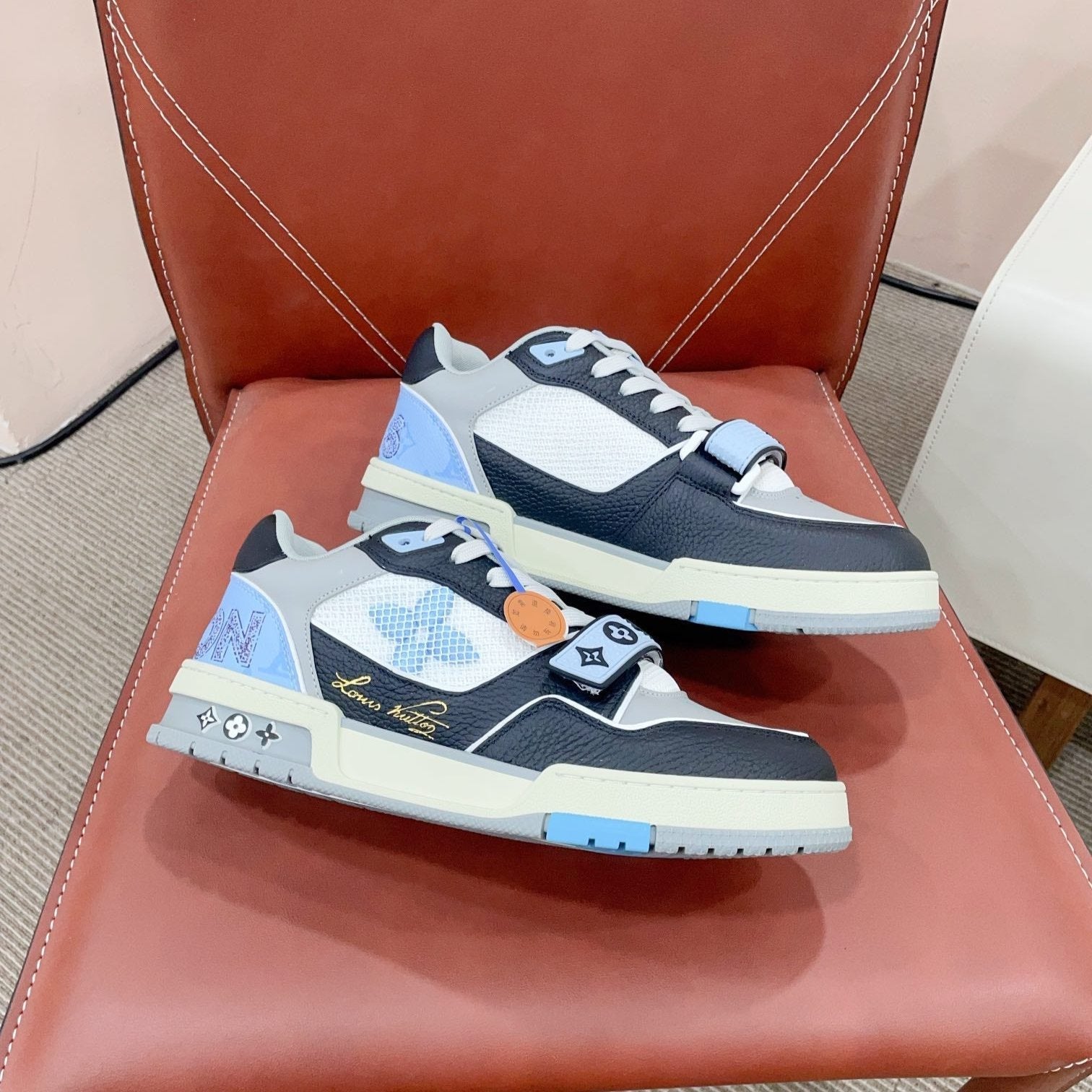 Sneaker LV Trainer con cinturino in velcro in pelle bovina blu