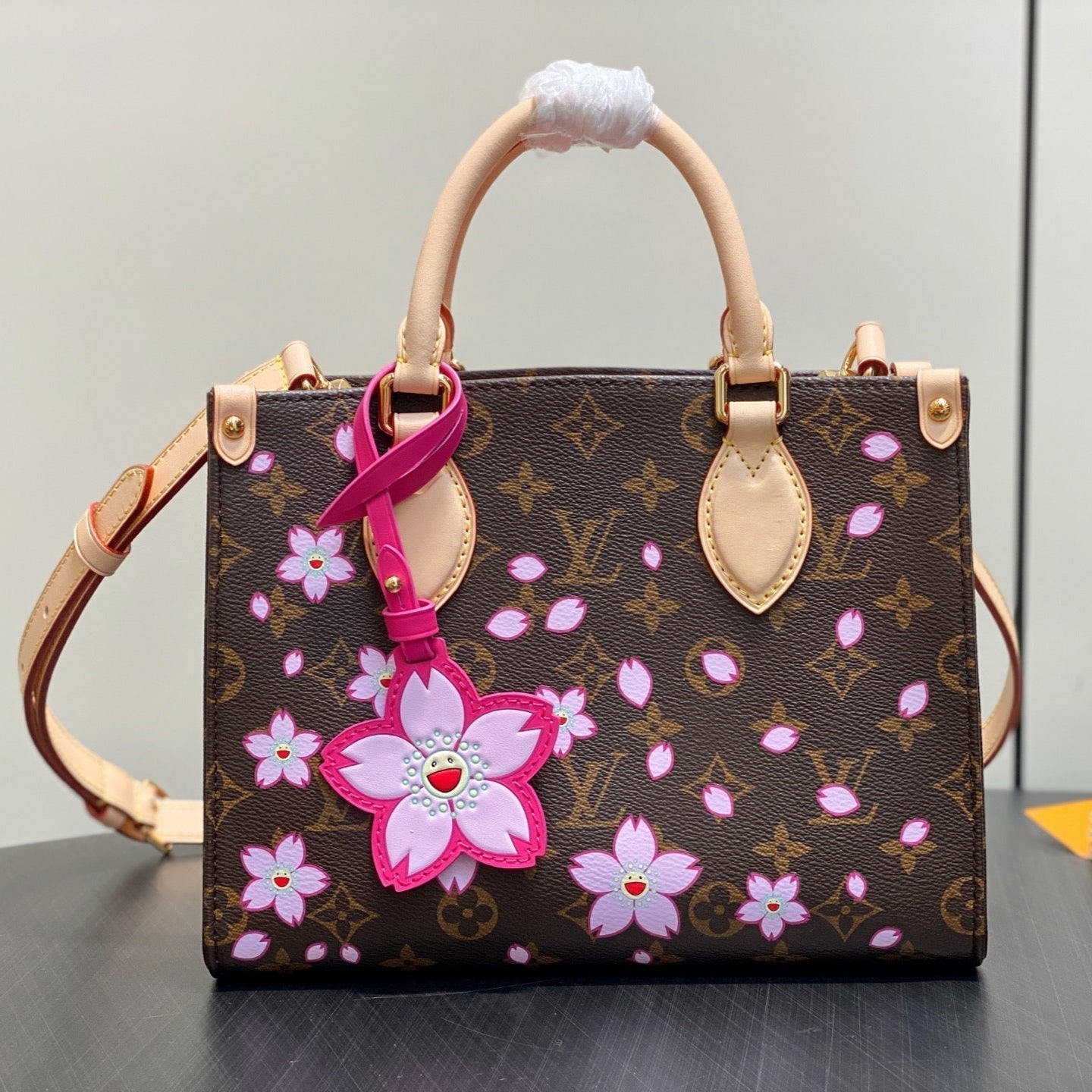 LV x TM OnTheGo PM 25 cm Sakura Brown Cherry Blossom Monogram Canvas