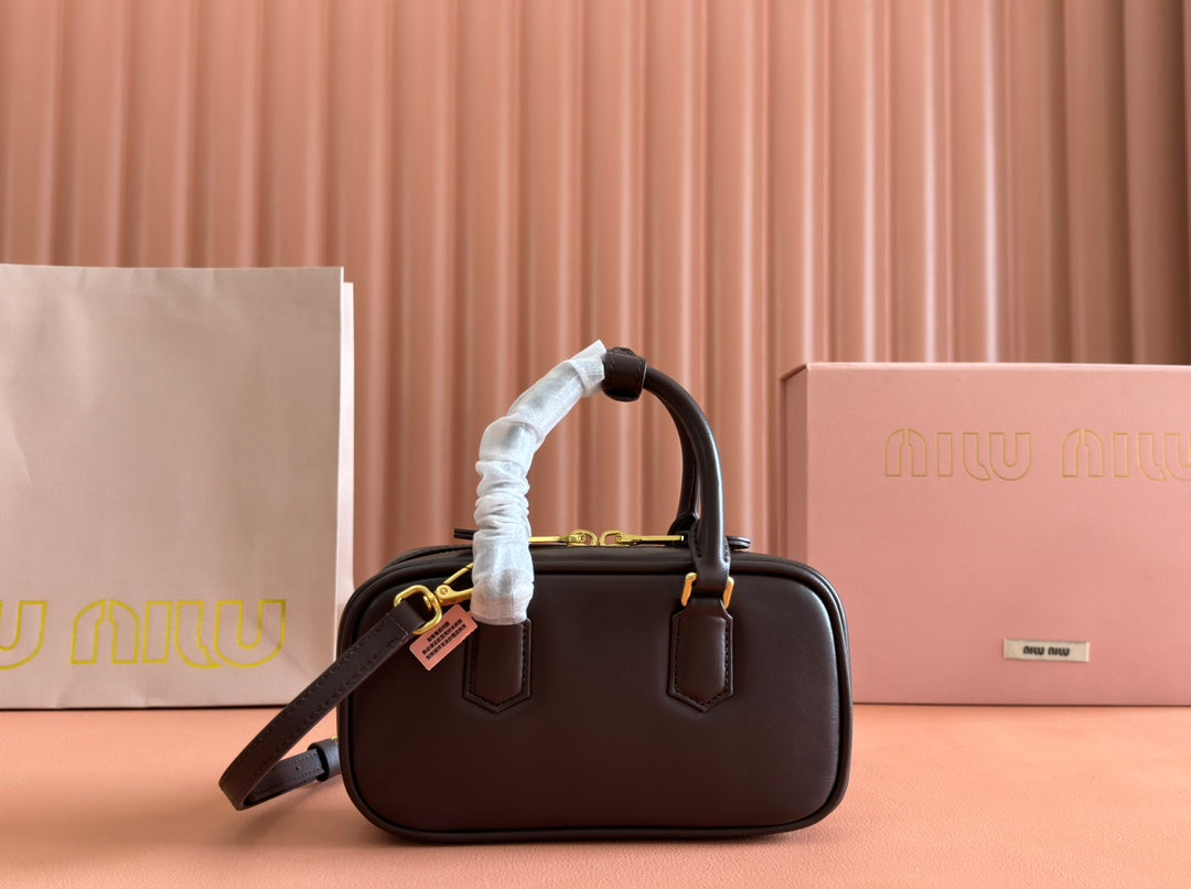 BORSA ARCADIE 19 IN PELLE DI VITELLO LUCIDA MARRONE TAMARINDO