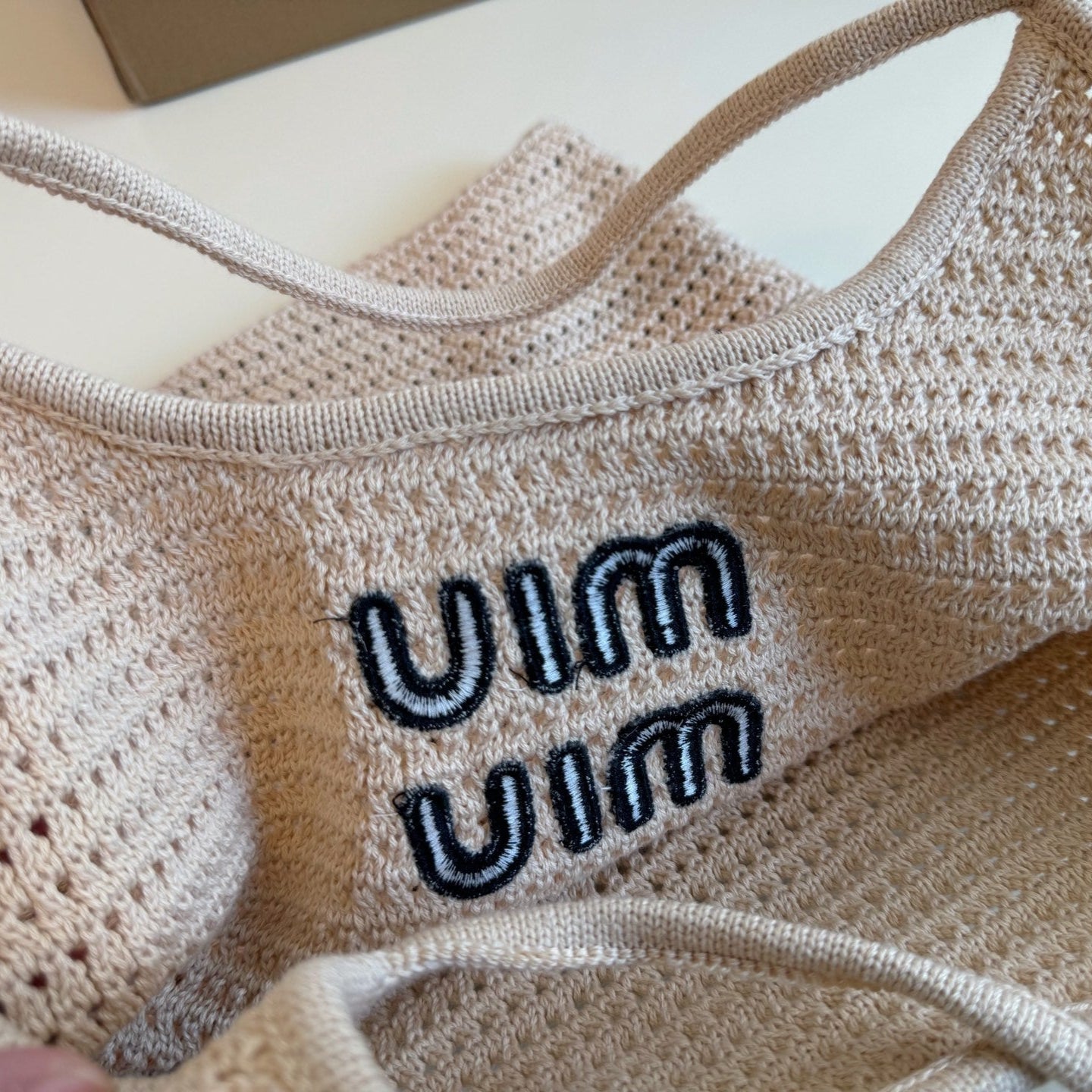 BORSA TOTE IN MAGLIA CAVA 35 IN TESSUTO INTRECCIATO BIANCO SPORCO E NERO