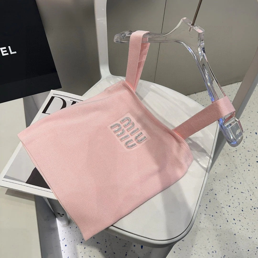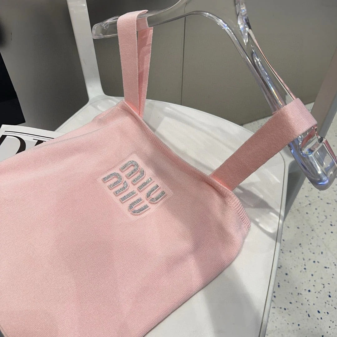TOP CAMI 643227 IN MAGLIA DI COTONE ROSA A COSTINE
