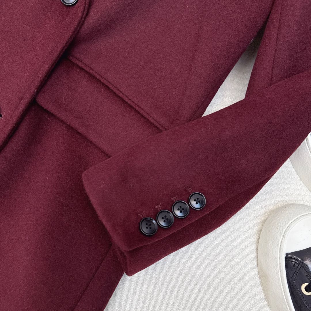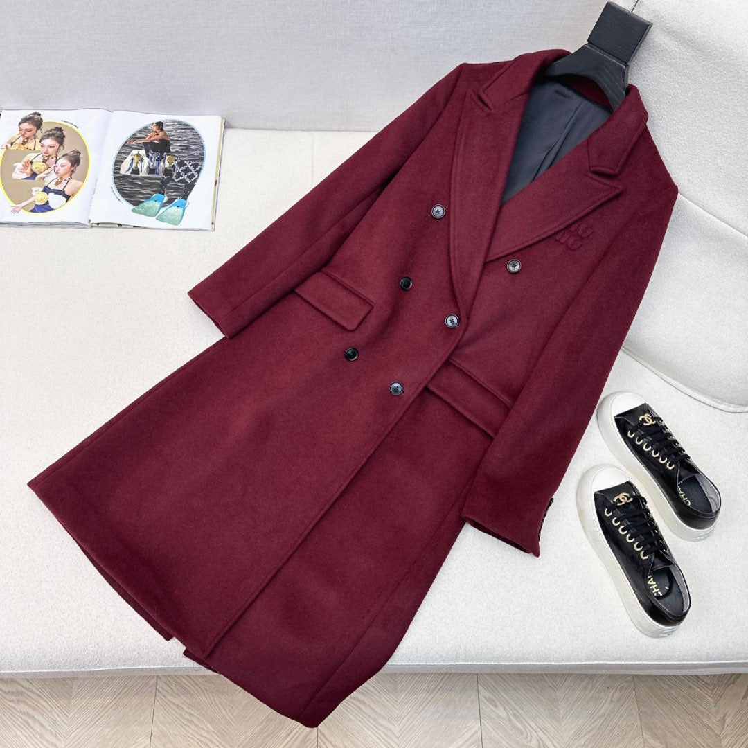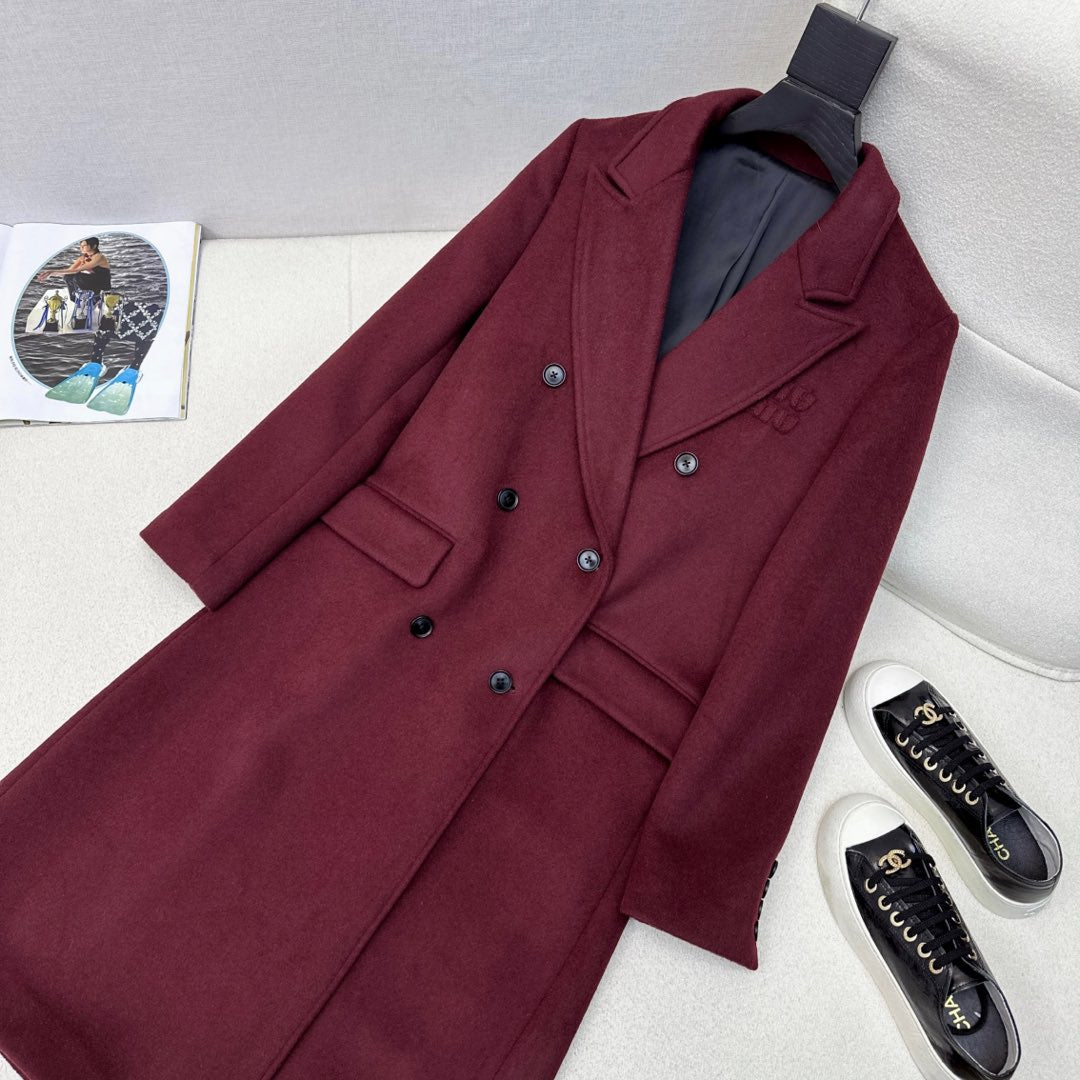 Giacca lunga da abito Miu Miu in poliestere e lana bordeaux