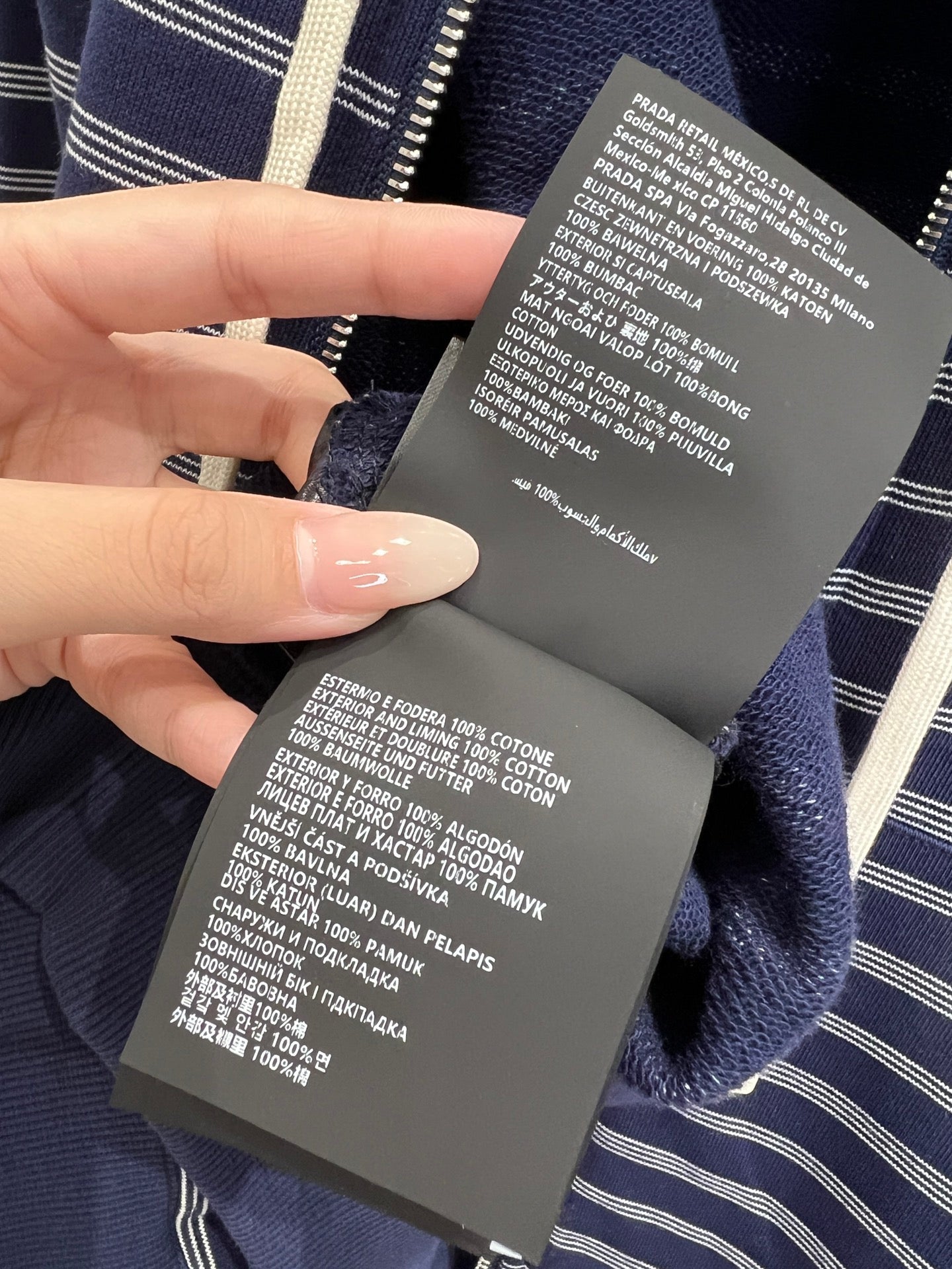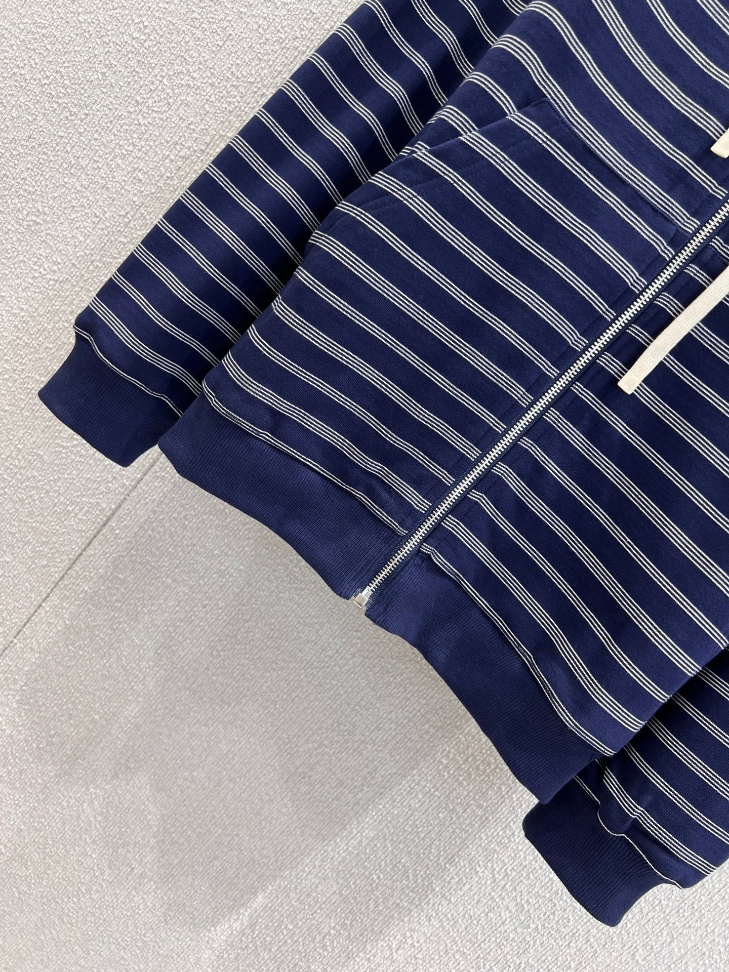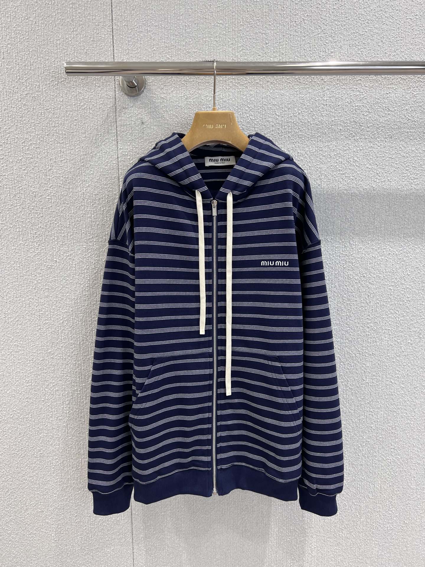 Miumiu 25FW Felpa con cappuccio e cerniera a righe in cotone blu