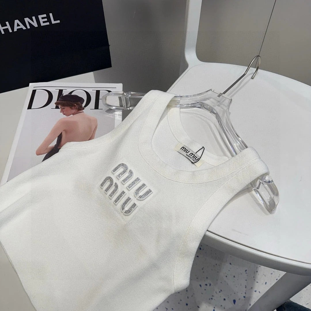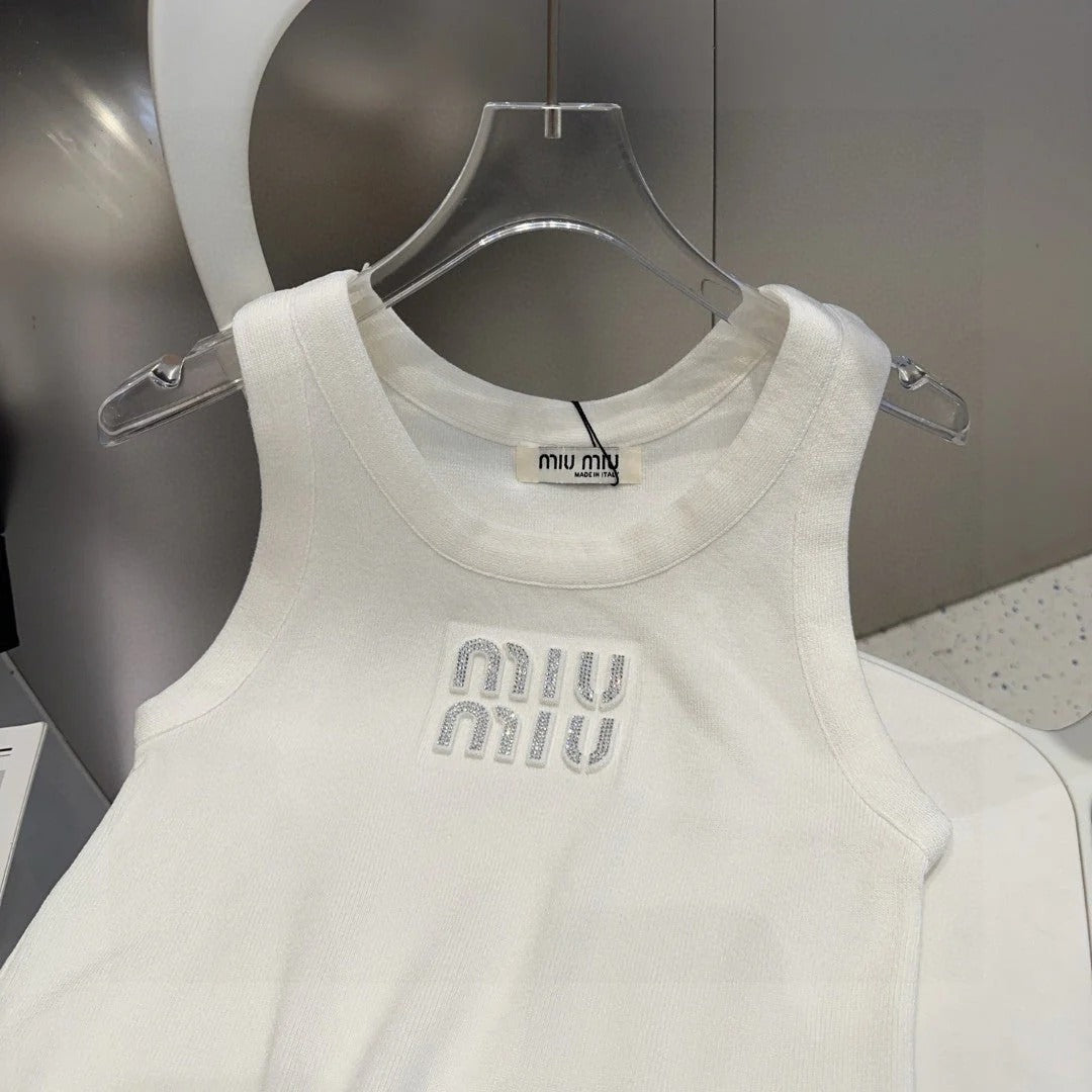 CANOTTA IN VISCOSA 643229 IN MAGLIA DI COTONE BIANCO A COSTINE CON LOGO DECORATO