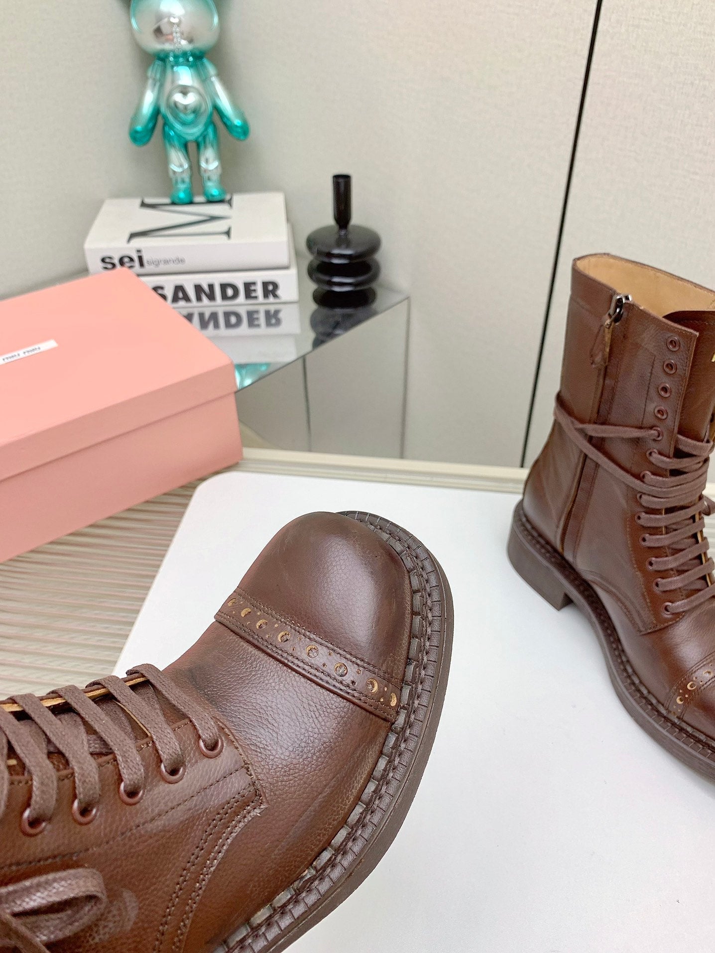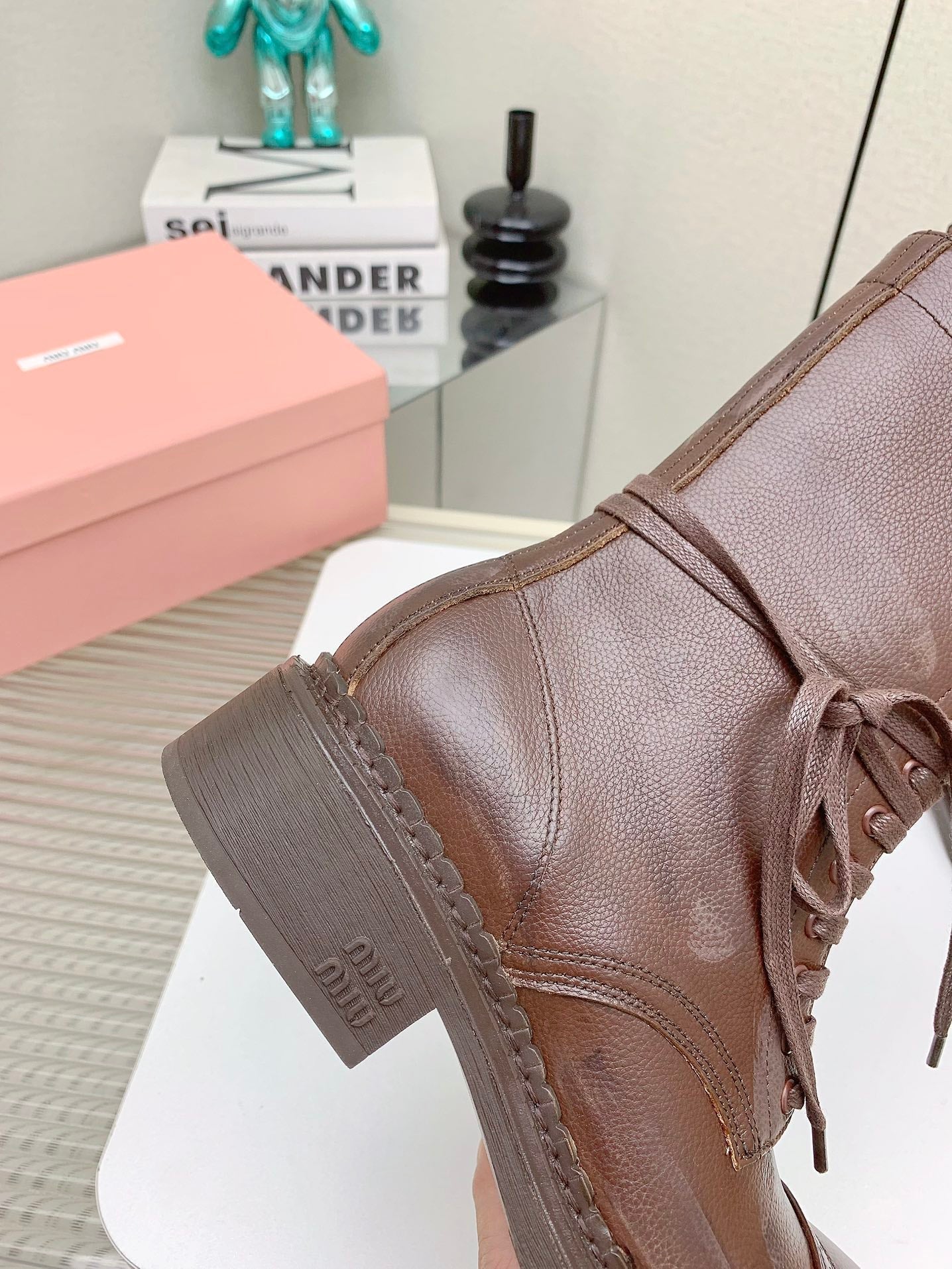 Stivaletti Miu in pelle con lacci in vacchetta marrone castagna