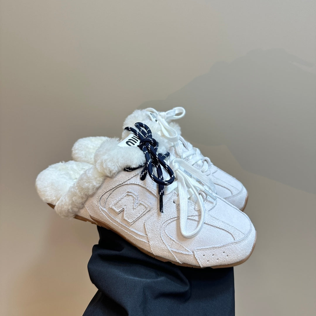 Miu x Balance 530 SL Mule in pelle scamosciata bianca