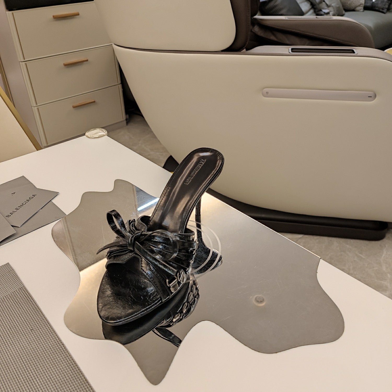 MULES ALTE IN PELLE DI MONTONE NERA CON FIOCCO