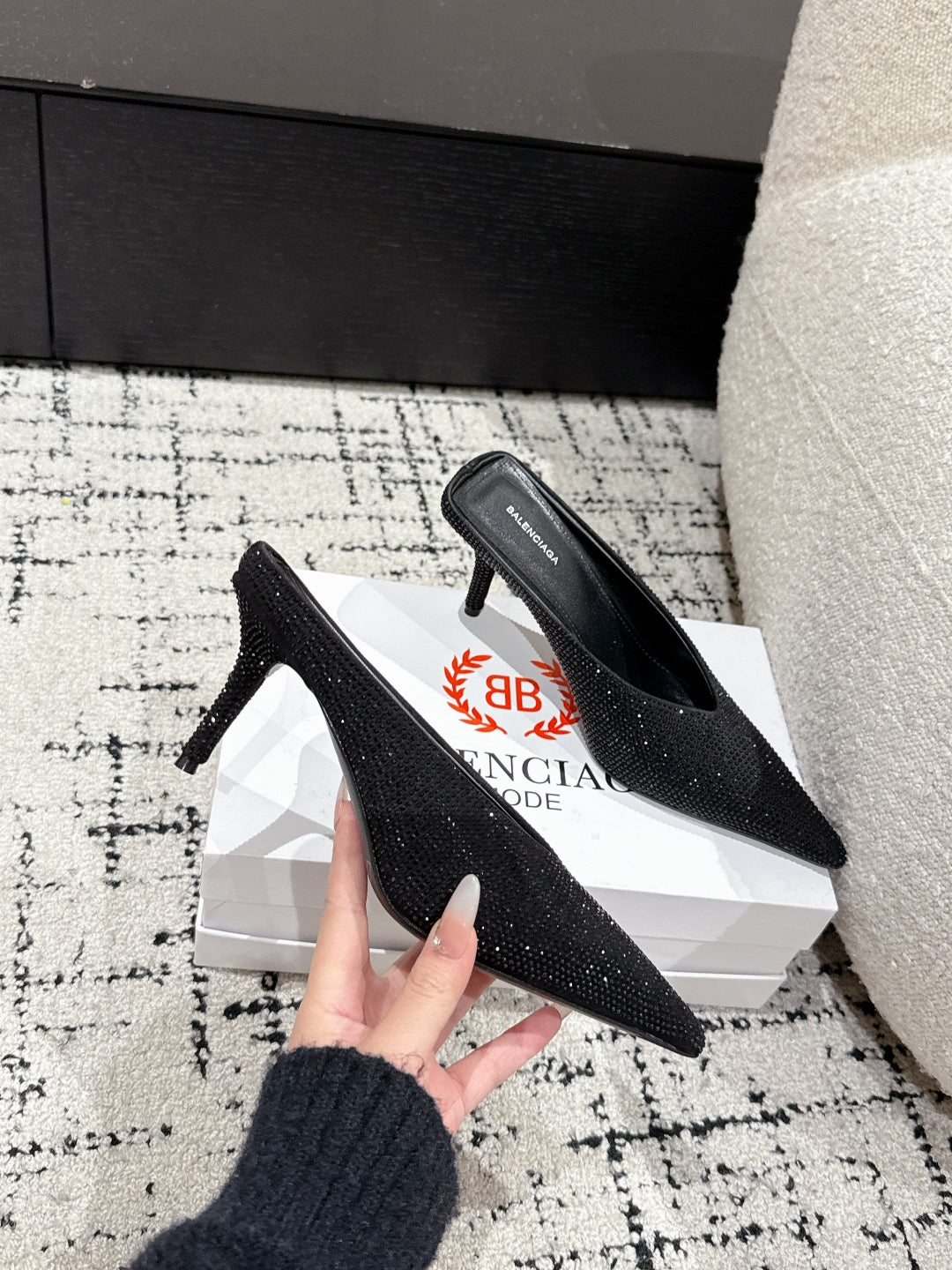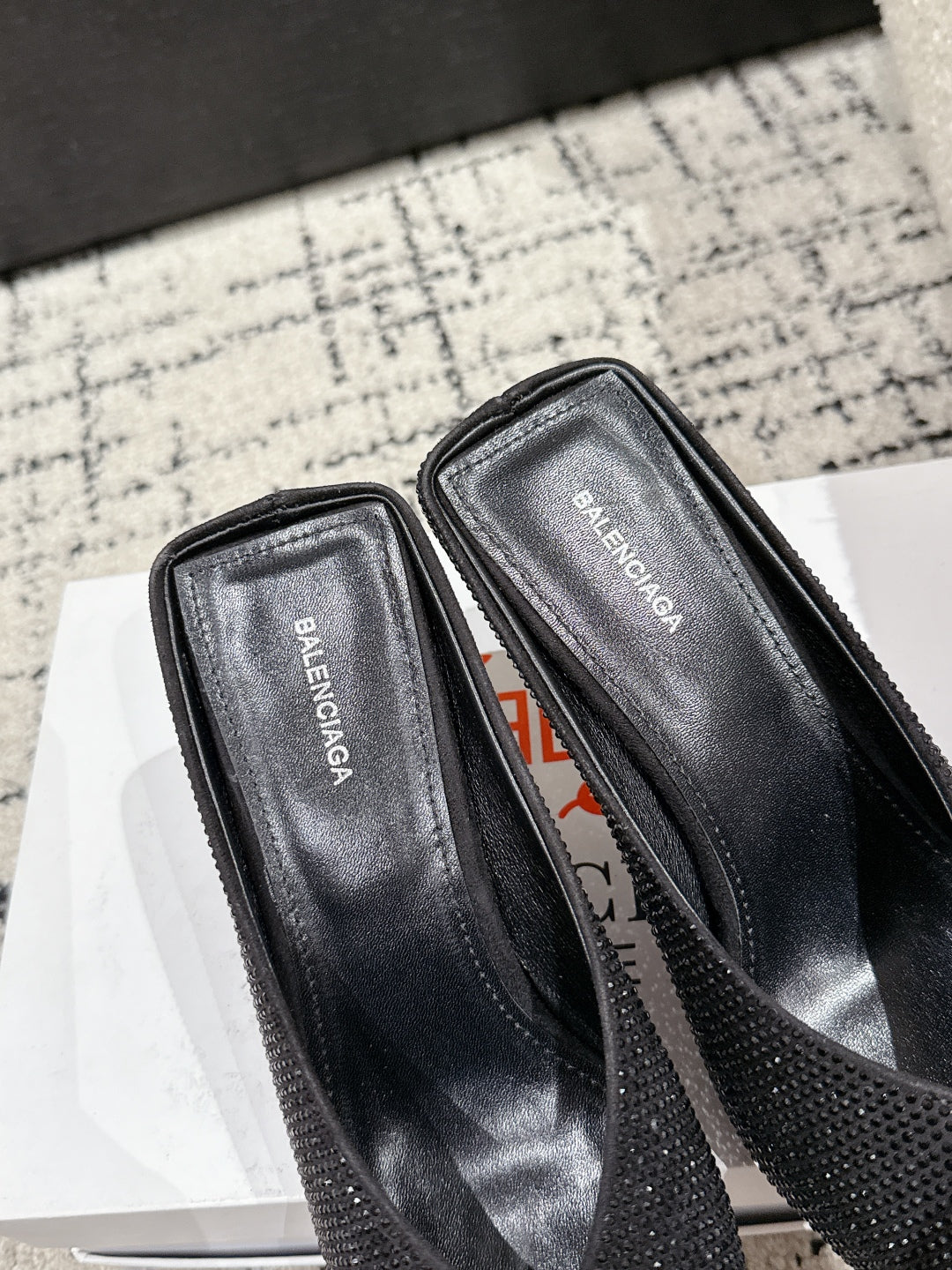 COLTELLO MULE ALTO 65MM IN CAMOSCIO NERO CON CRISTALLI COMPLETI