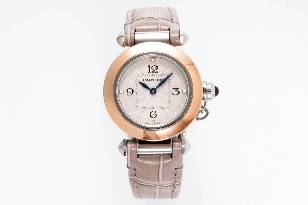 pasha 30mm quarzo oro rosa quadrante bianco pelle marrone chiaro