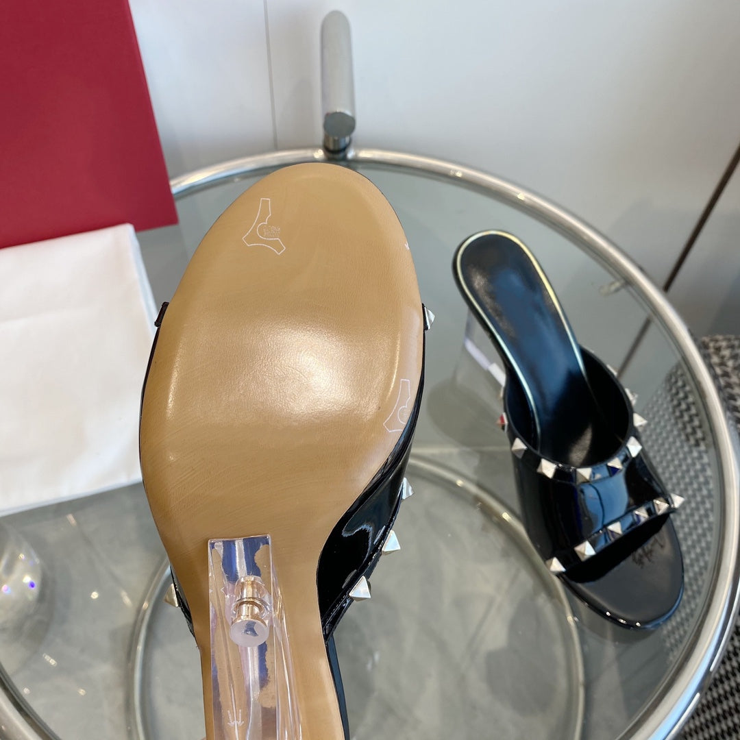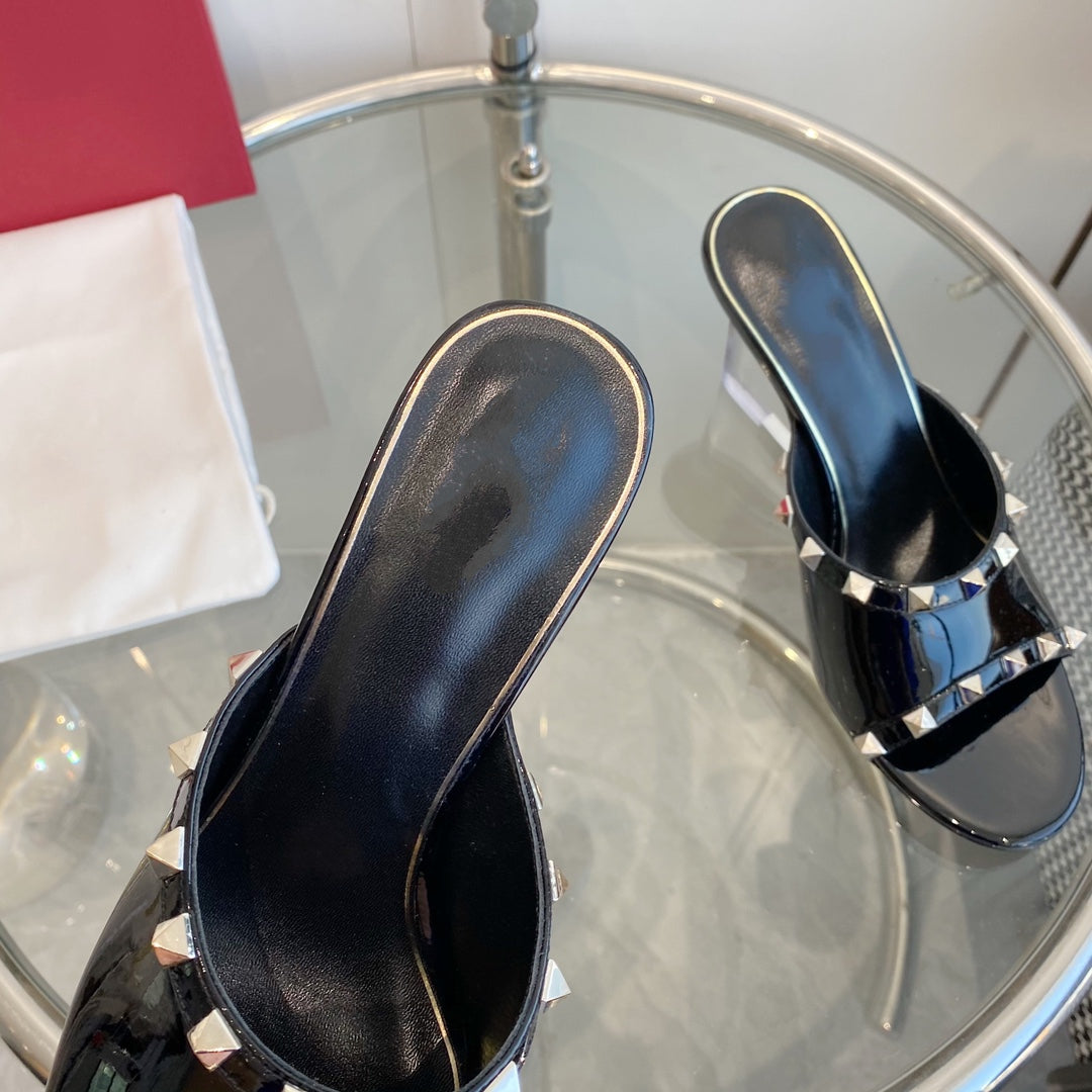 Mules Rockstud in pelle verniciata nera da 80 mm