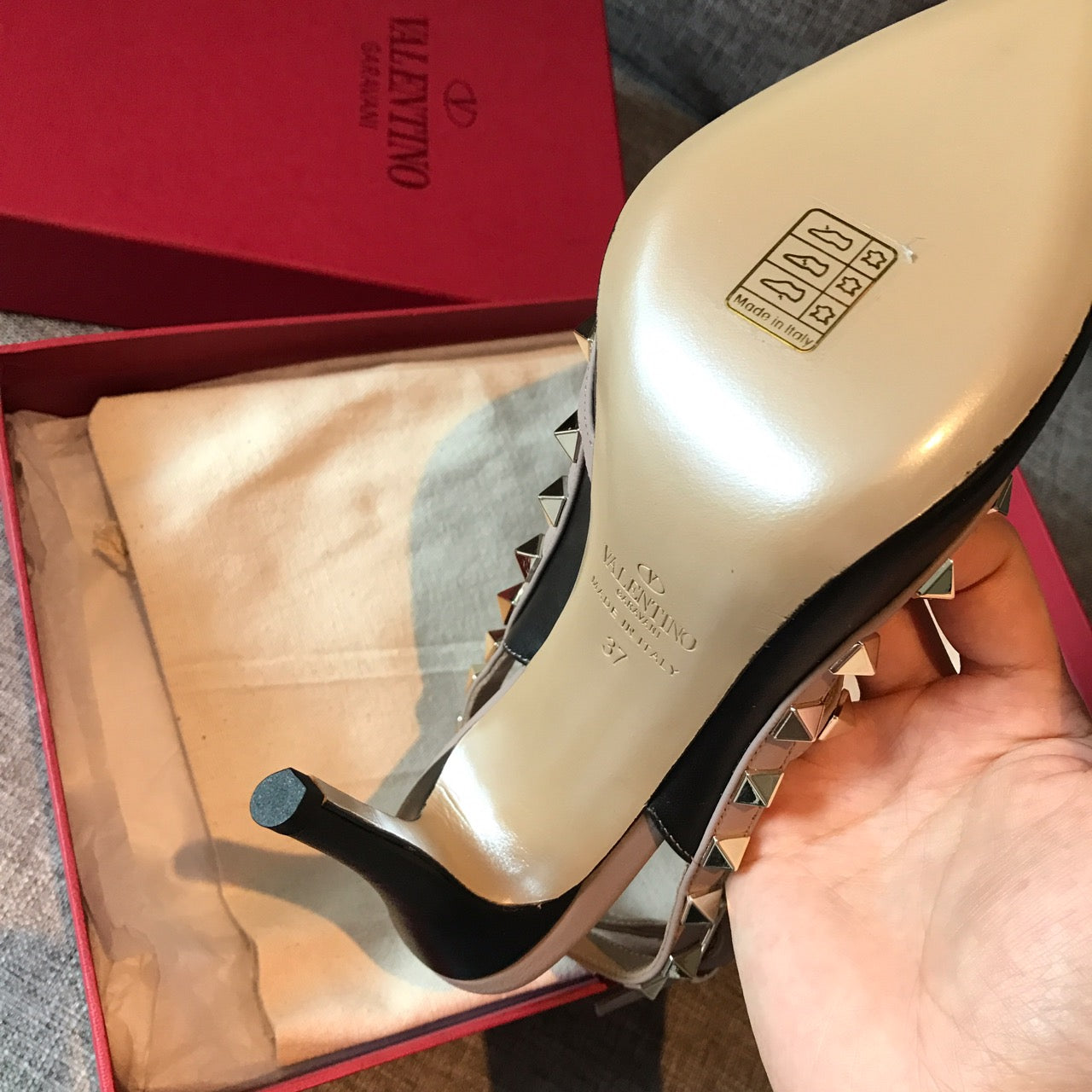 Rockstud Slingback 100 Nero Beige Pelle di vitello
