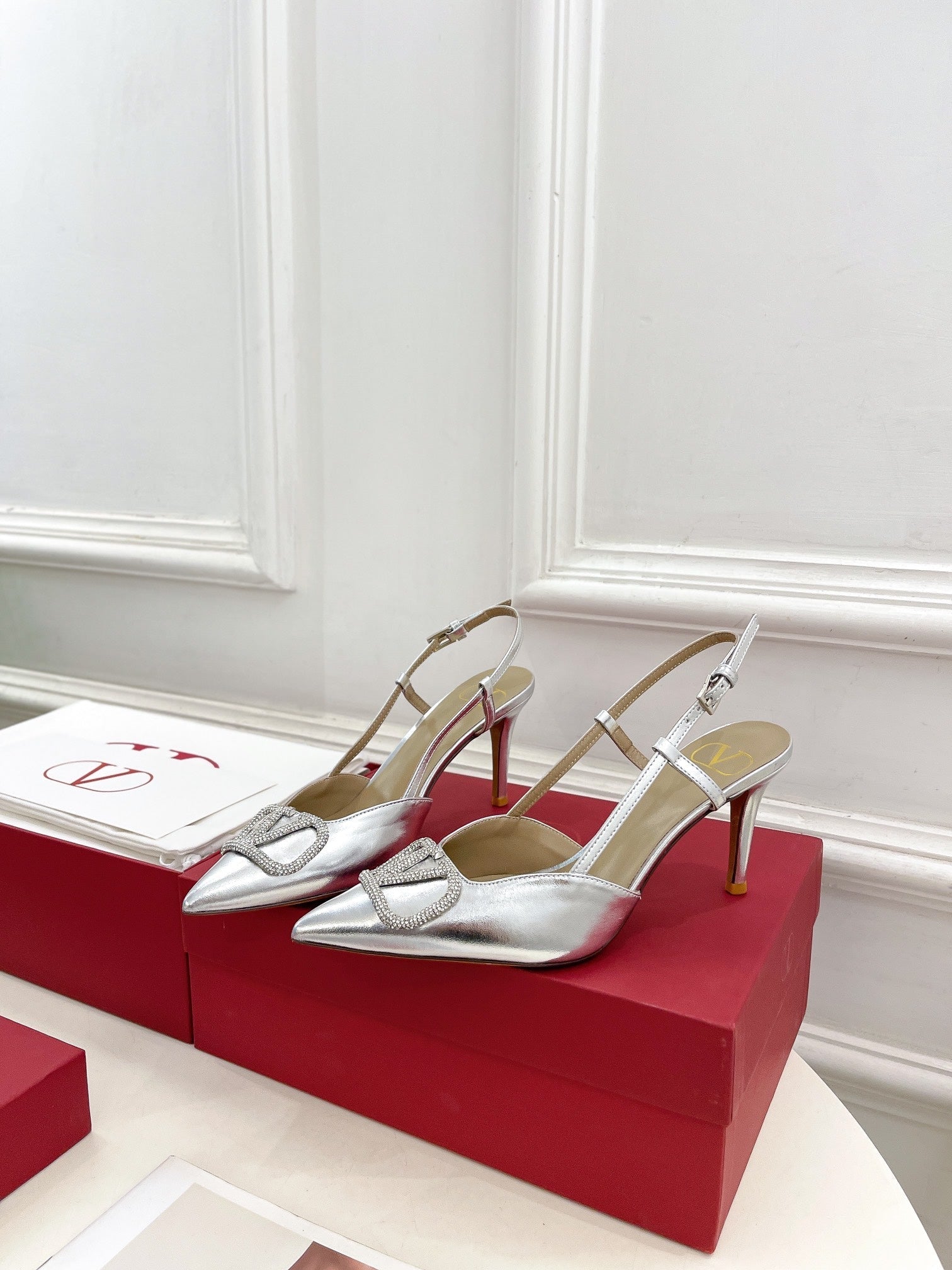 Décolleté con cinturino posteriore Vlogo Signature Diamond in pelle di vitello argentata
