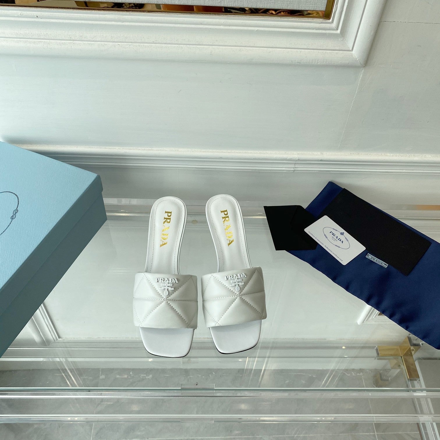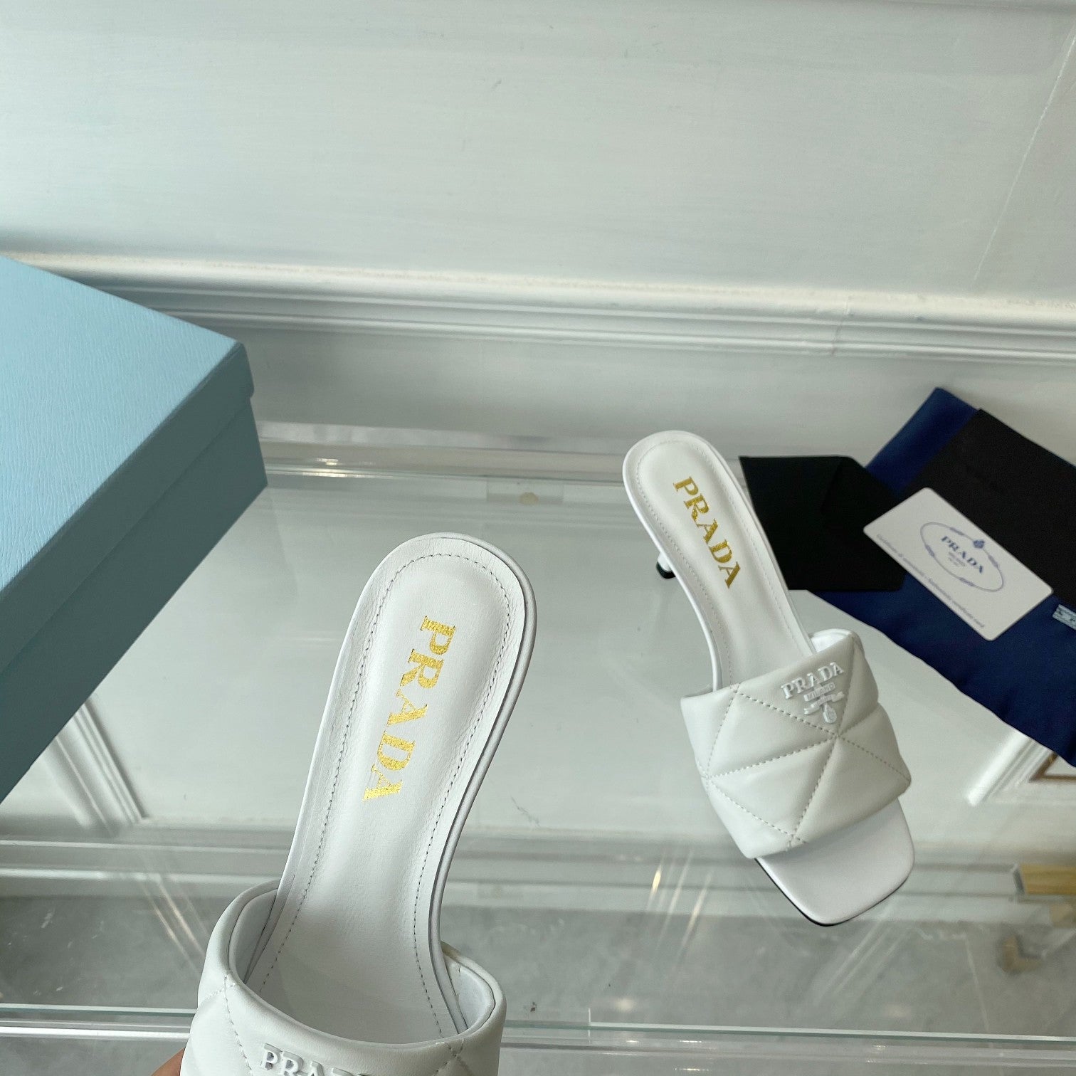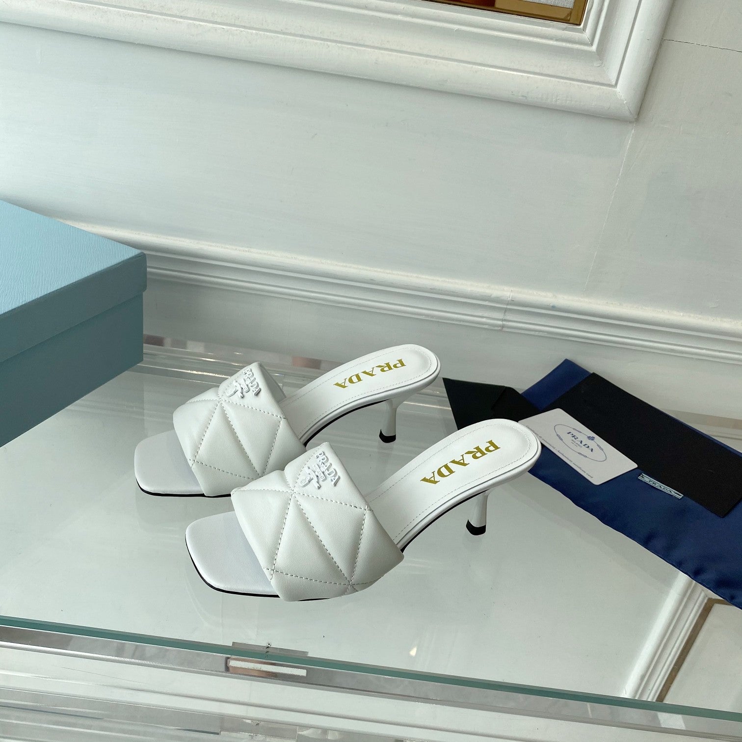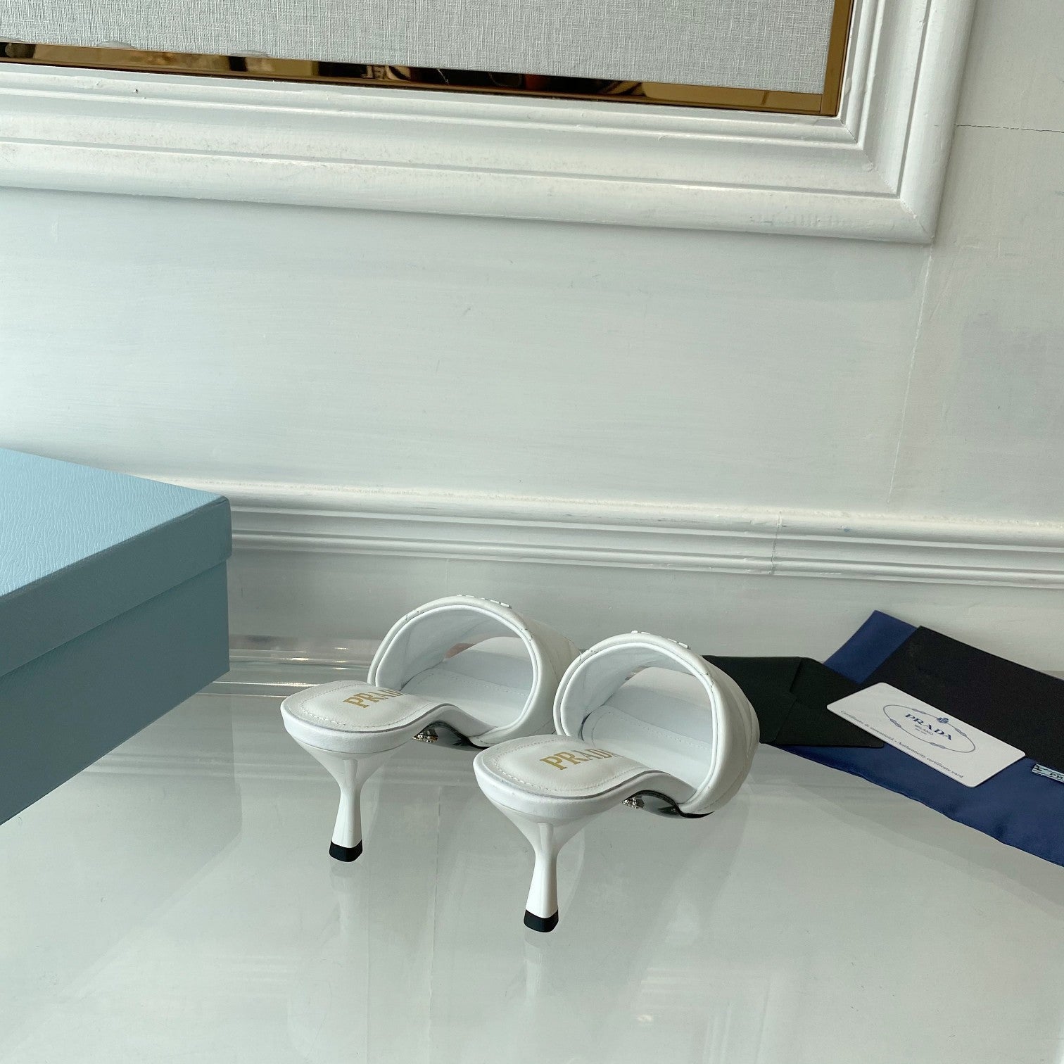 Sandalo con tacco Pra 65 suola a punta trapuntata in pelle bianca