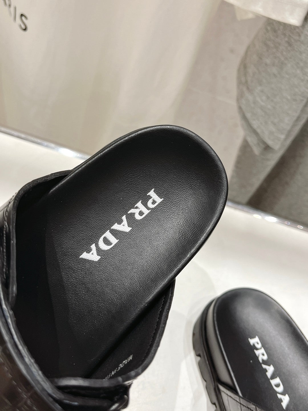 SANDALI PRA IN PELLE DI COCCODRILLO NERO IN PELLE DI VITELLO