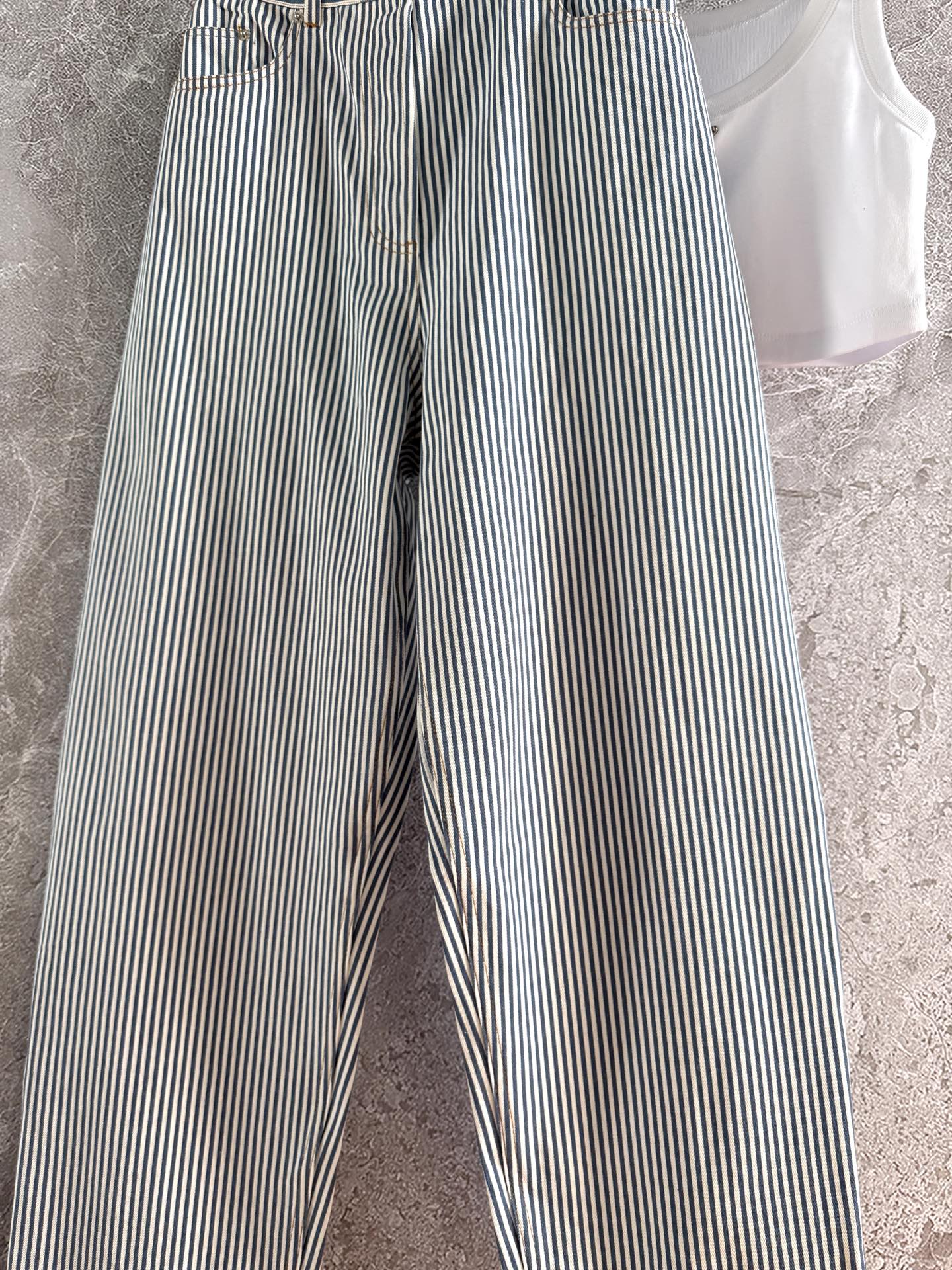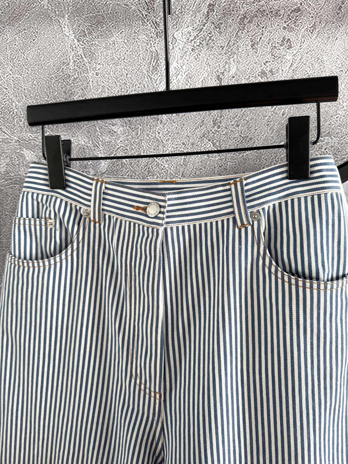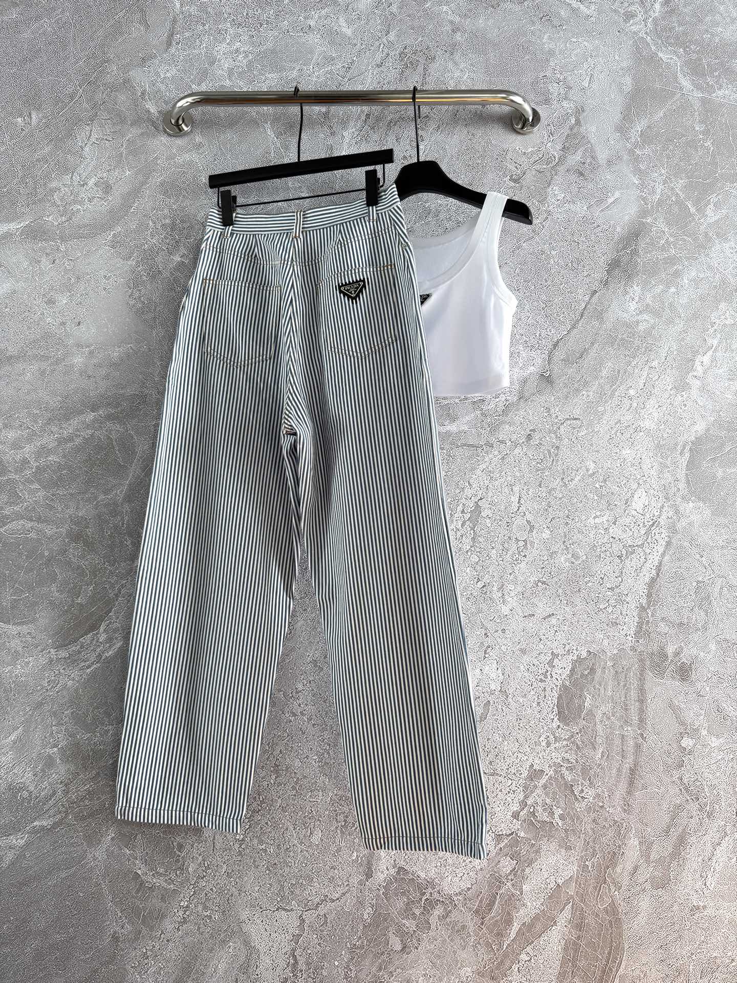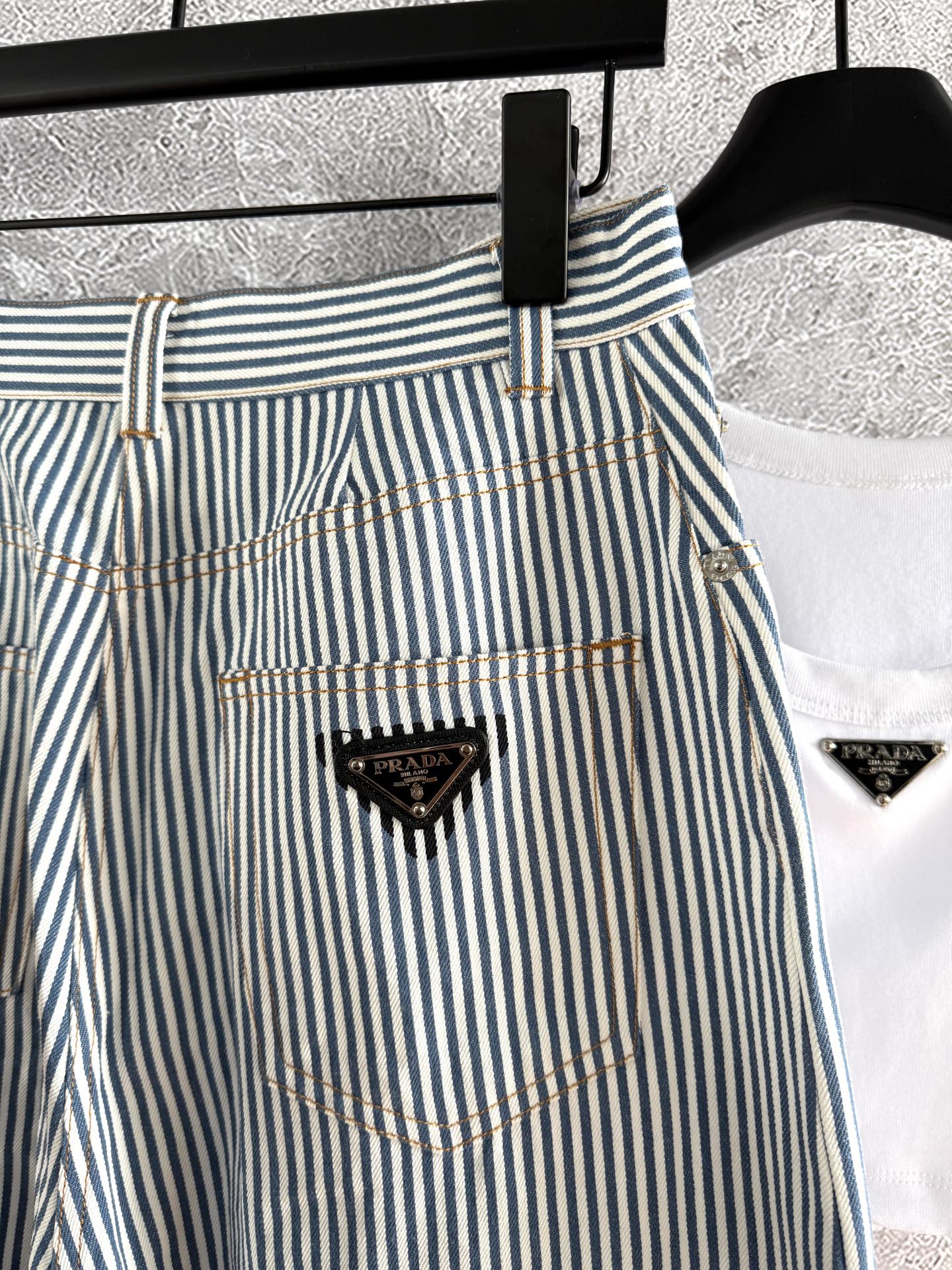 Pantaloni a righe Prada in misto cotone bianco e blu