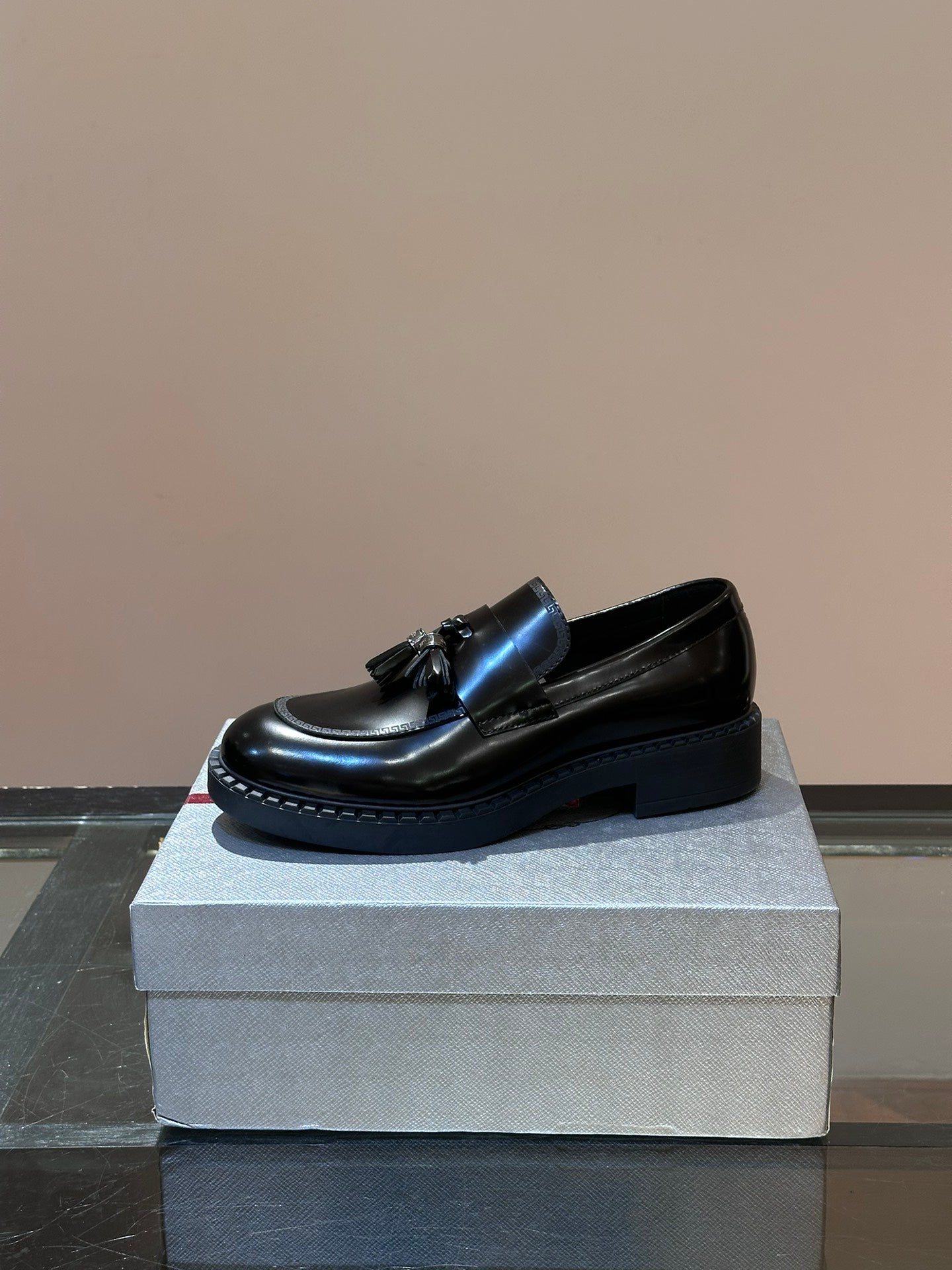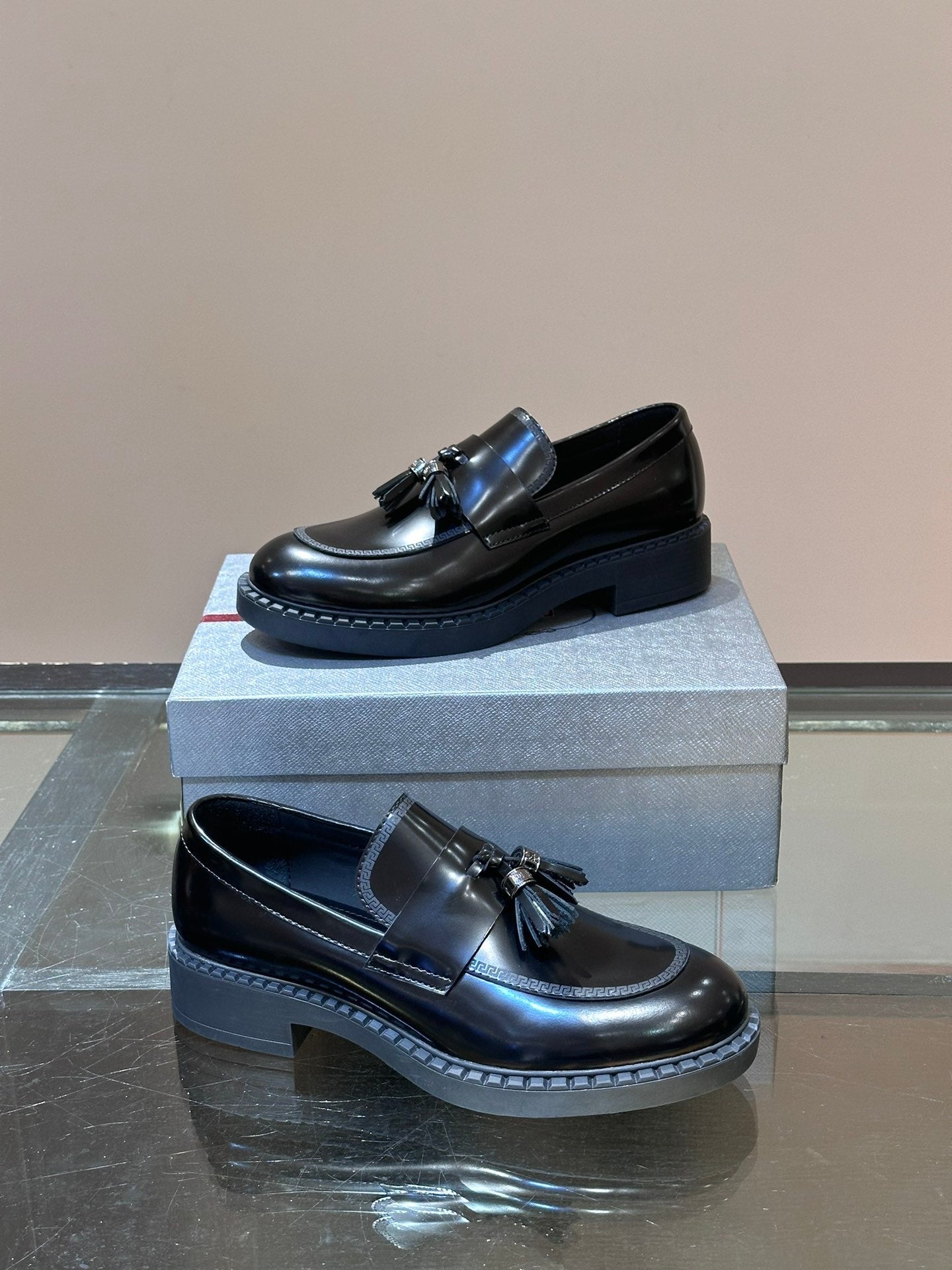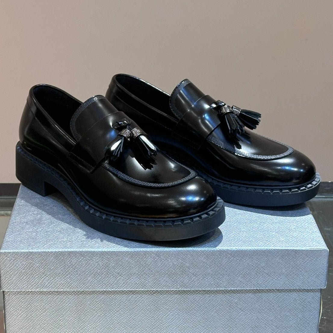 MOCASSINO OXFORD PRA IN PELLE DI VITELLO NERA CON NAPPINA