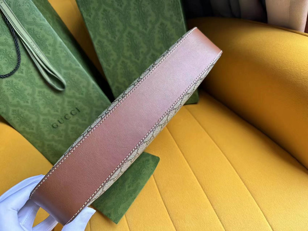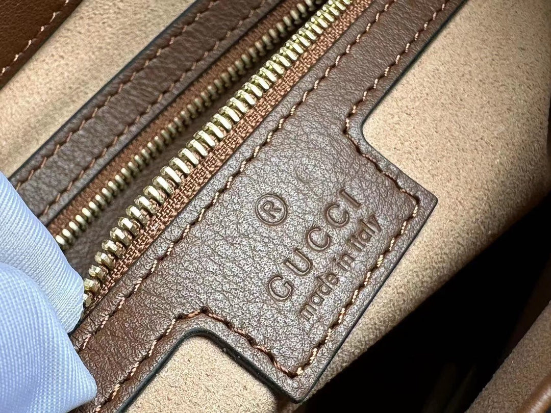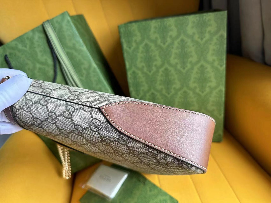 BORSA A TRACOLLA GG PADLOCK 32 IN TELA BEIGE E PELLE DI VITELLO MARRONE