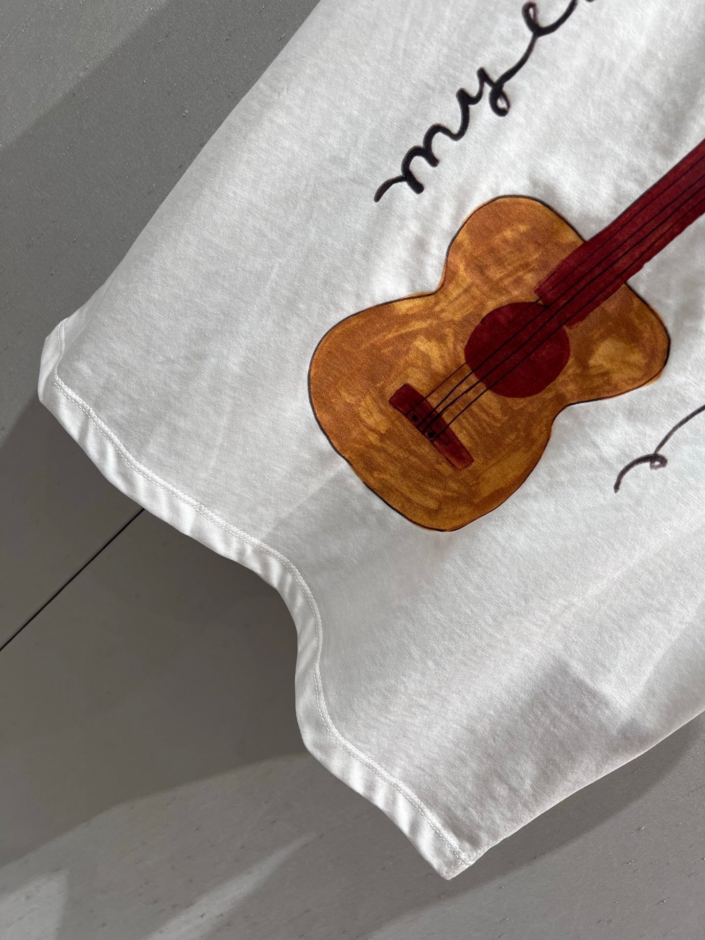 Gucci 25 Cartoon Guitar Print T-shirt a maniche corte in cotone bianco 215699