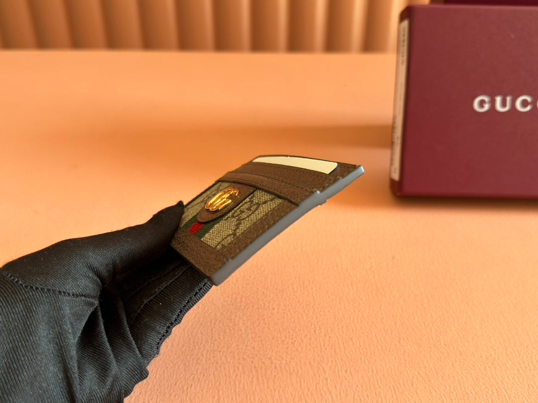 Portafoglio porta carte Gucci Ophidia in tela e pelle marrone ebano 239965