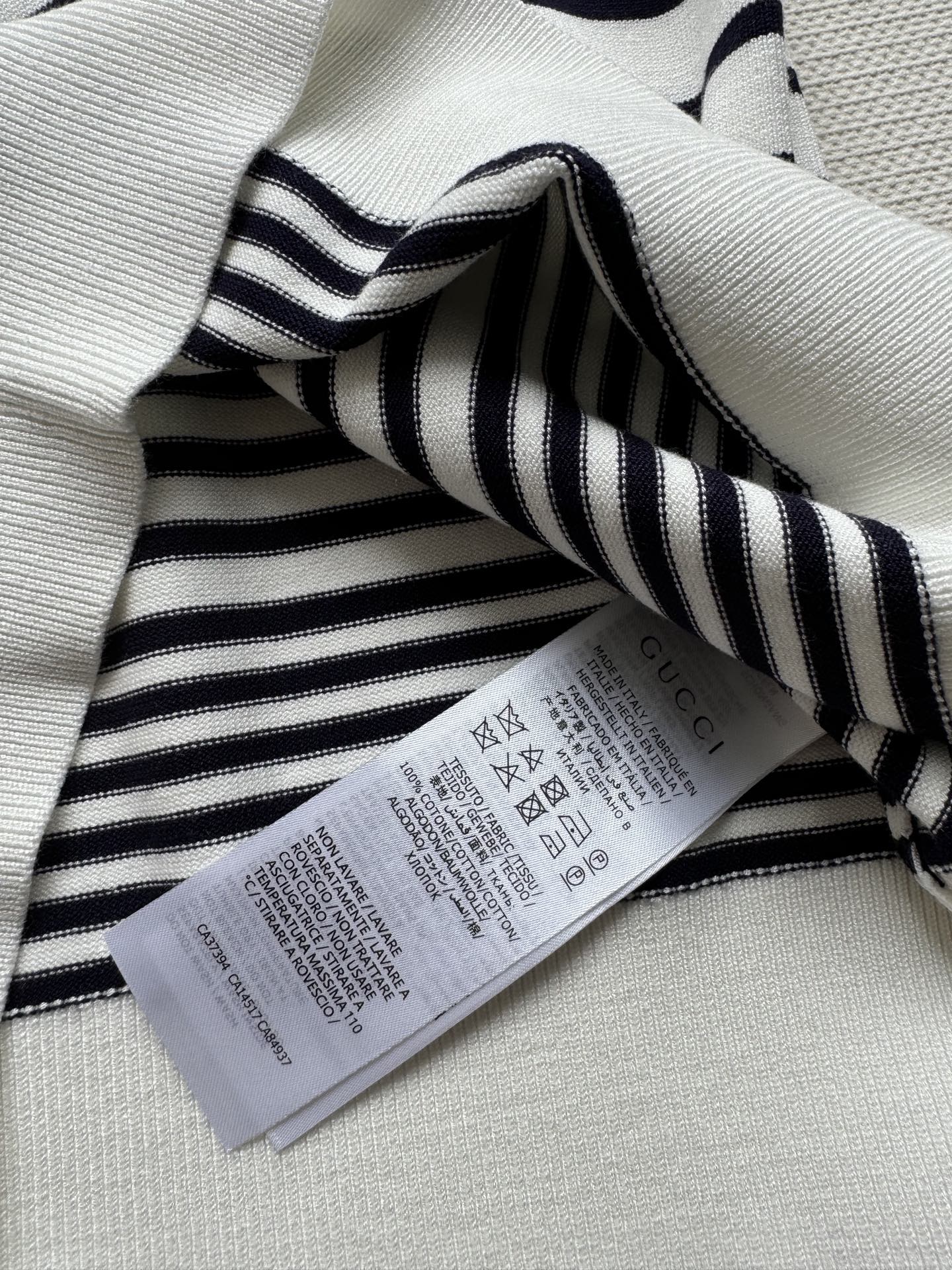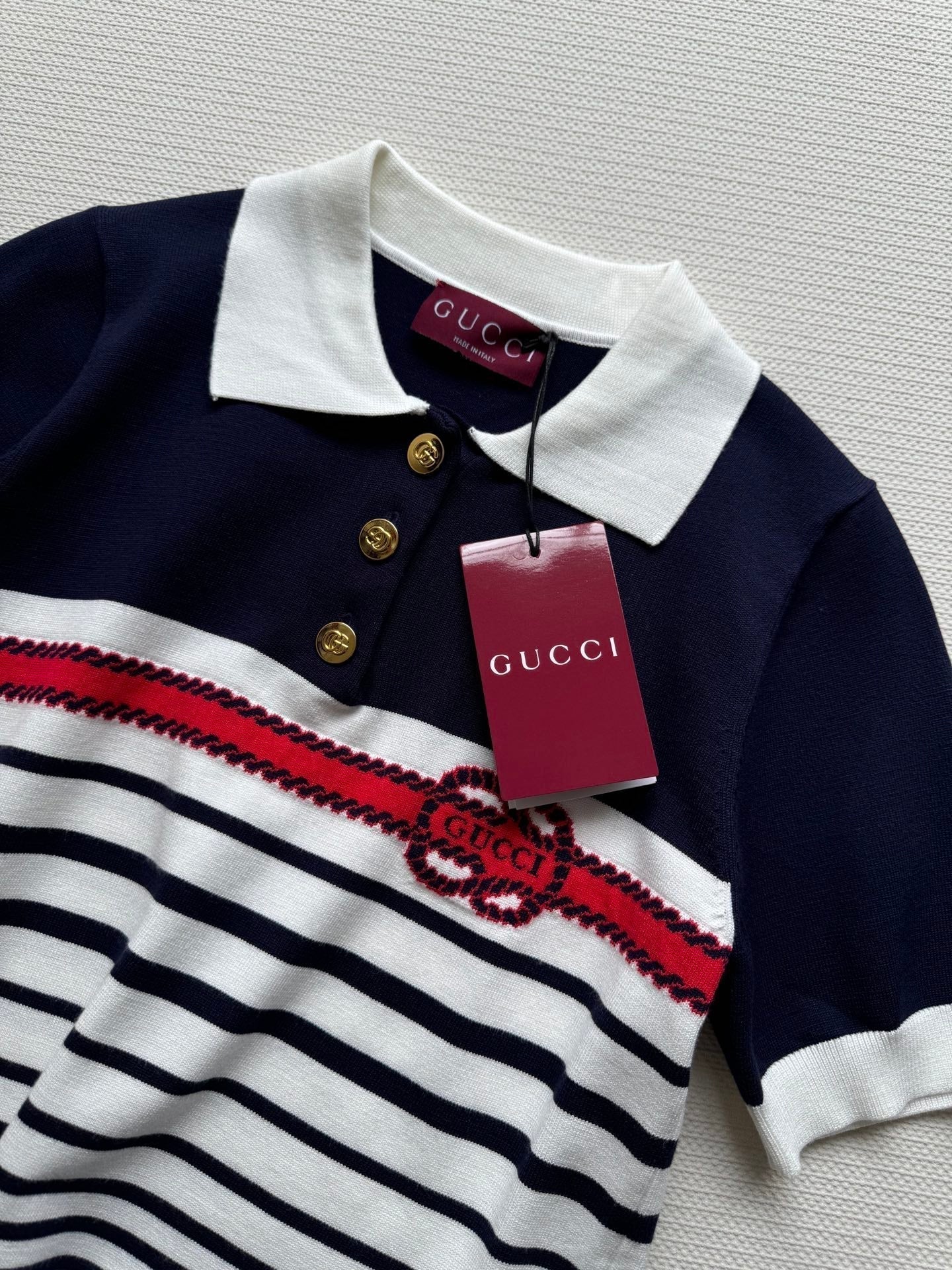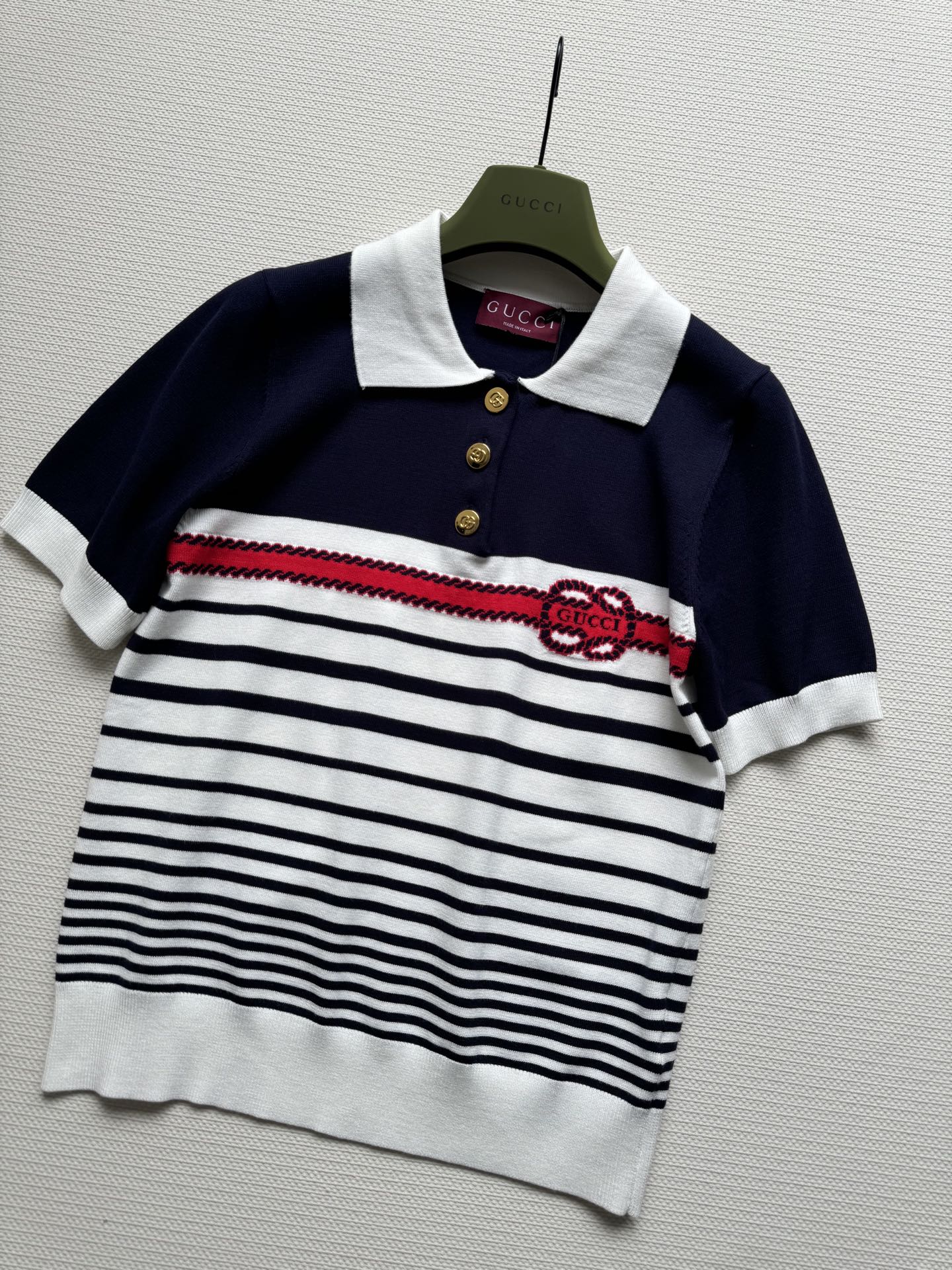 Polo a righe Gucci in maglia blu scuro e cotone bianco