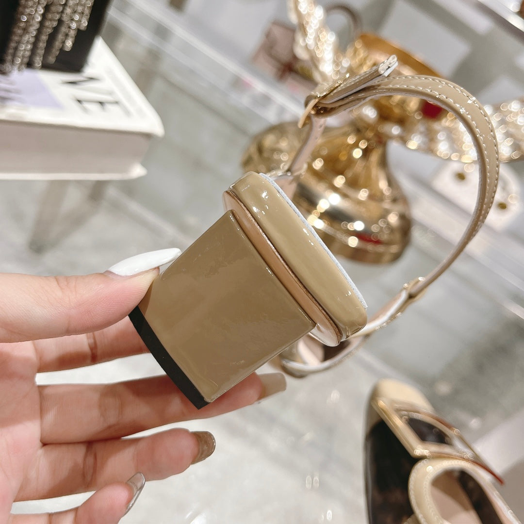 Belle Viv - Décolleté con cinturino posteriore e fibbia in metallo, 45, in pelle verniciata color cammello