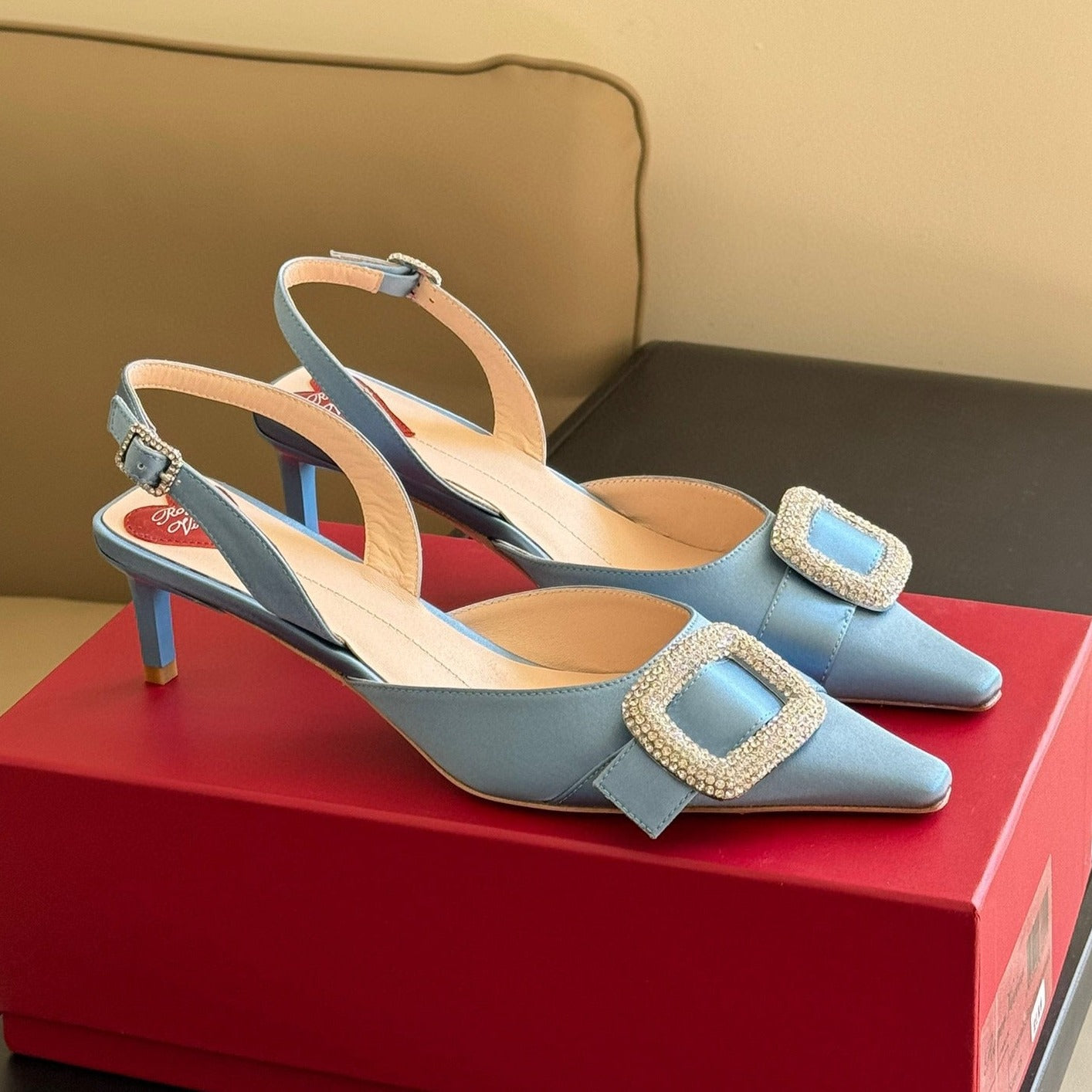 Viv Canard Slingback Pumps 55 in raso azzurro
