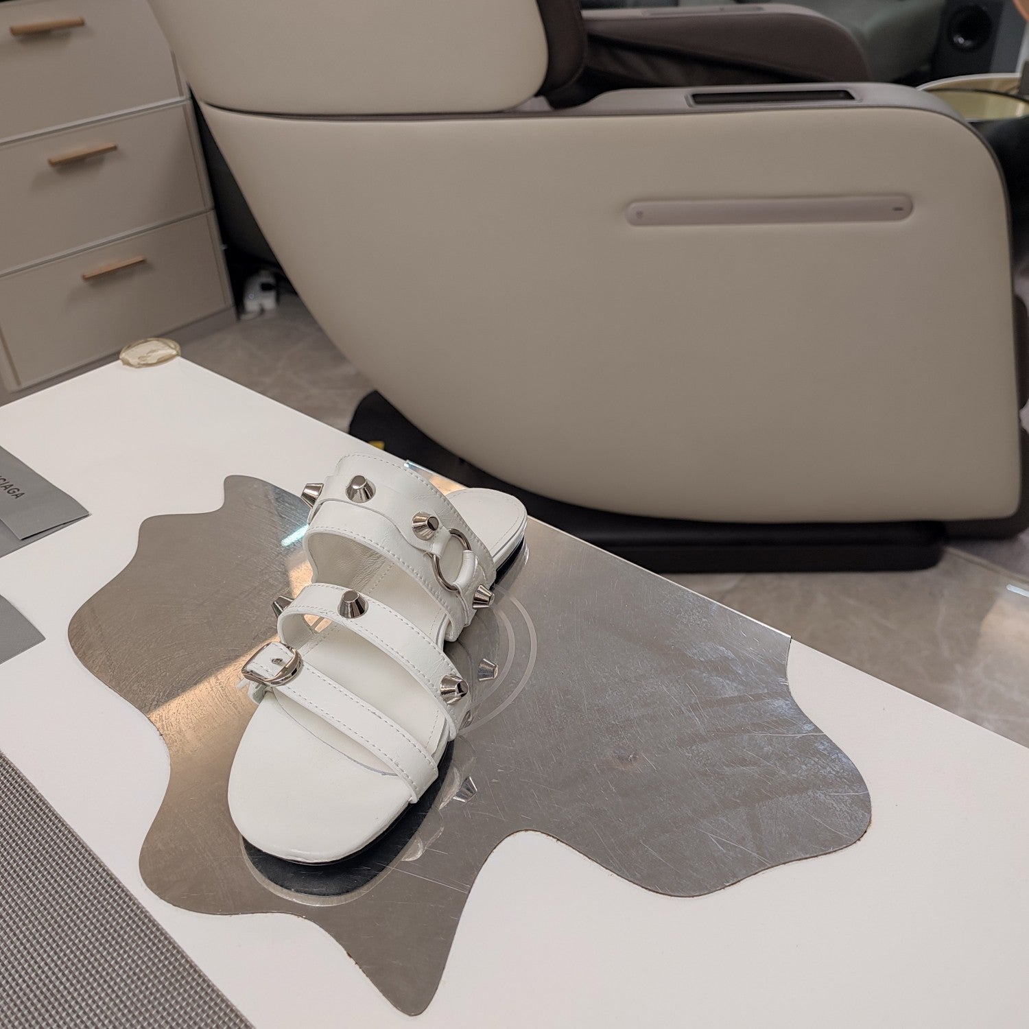 SANDALI BASSI CON CINTURINI IN PELLE DI MONTONE CERA-OLIATA CON BORCHIE BIANCHE