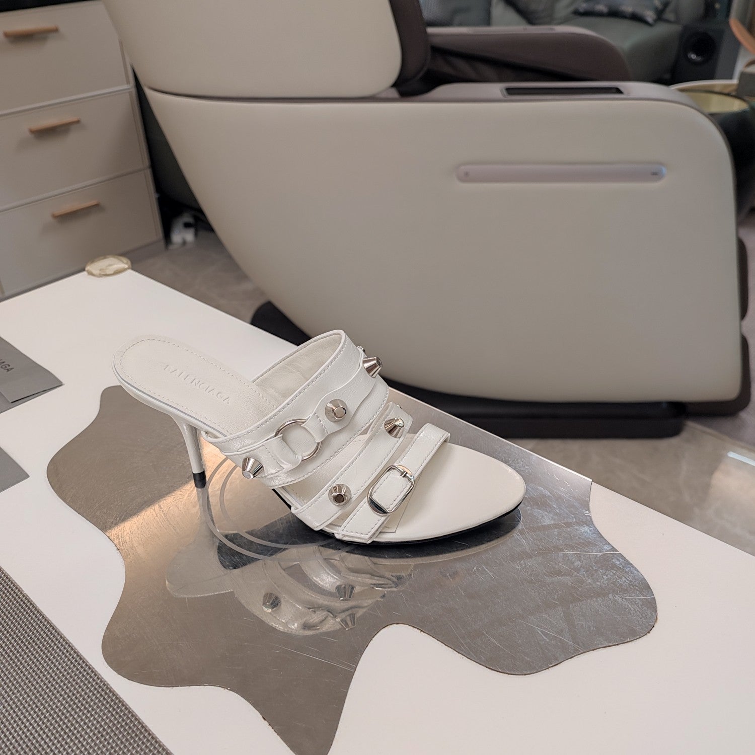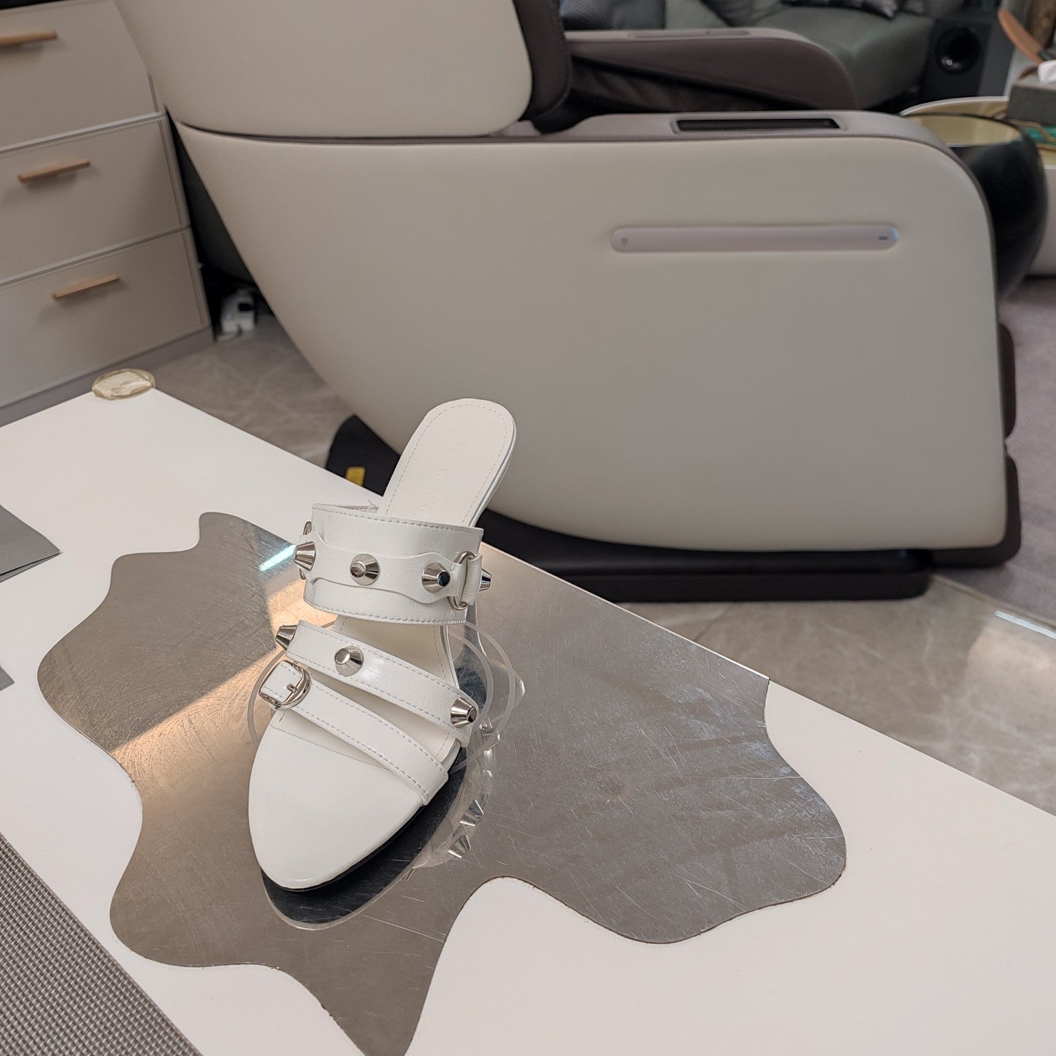 SANDALI CON TACCO ALTO E CINTURINI IN PELLE DI MONTONE OLIO-CERA CON BORCHIE BIANCHE