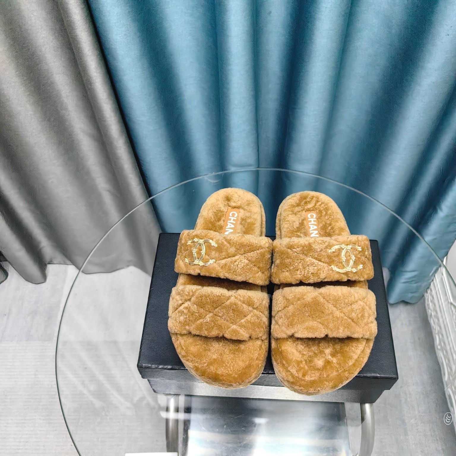 Ciabatte CC in pile di lana con motivo marrone chiaro