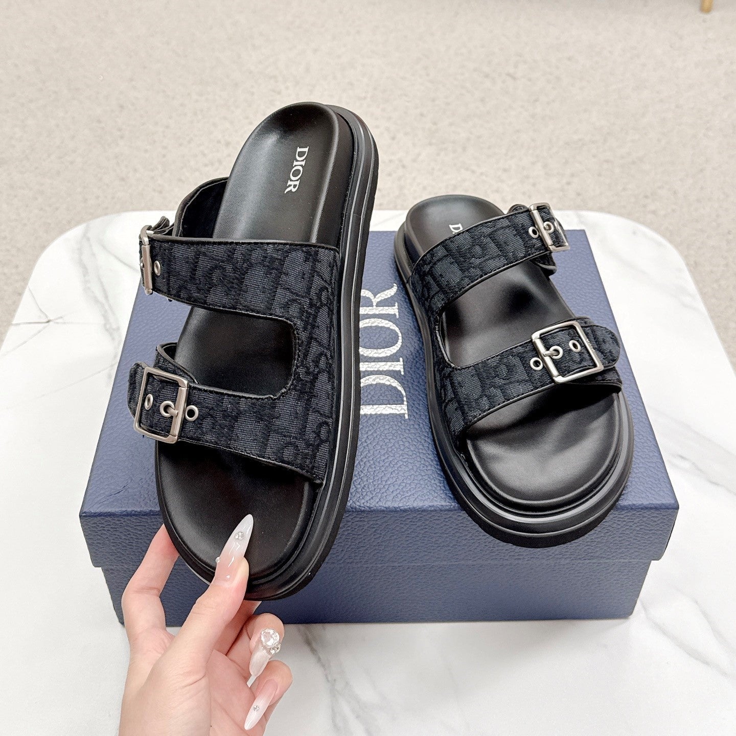 Sandali CD Aqua con cinturini Blu Nero Obliquo Jacquard Frabic 476660